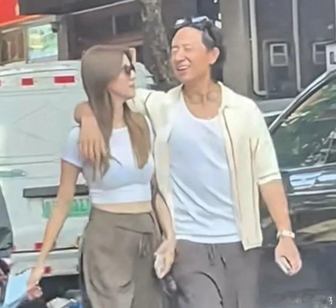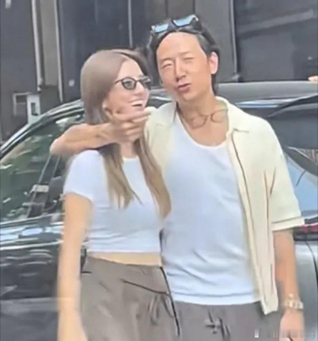 这种路人随手拍下的同框画面,最能直观体现婚姻状态了。两人全程热聊,脸上笑意不断,仿佛有聊不完的话,大街上也紧紧挨着,肢体互动亲昵得很,连上衣都是同款白色T恤,细节里藏着的甜,真是让人忍不住想磕这口糖~