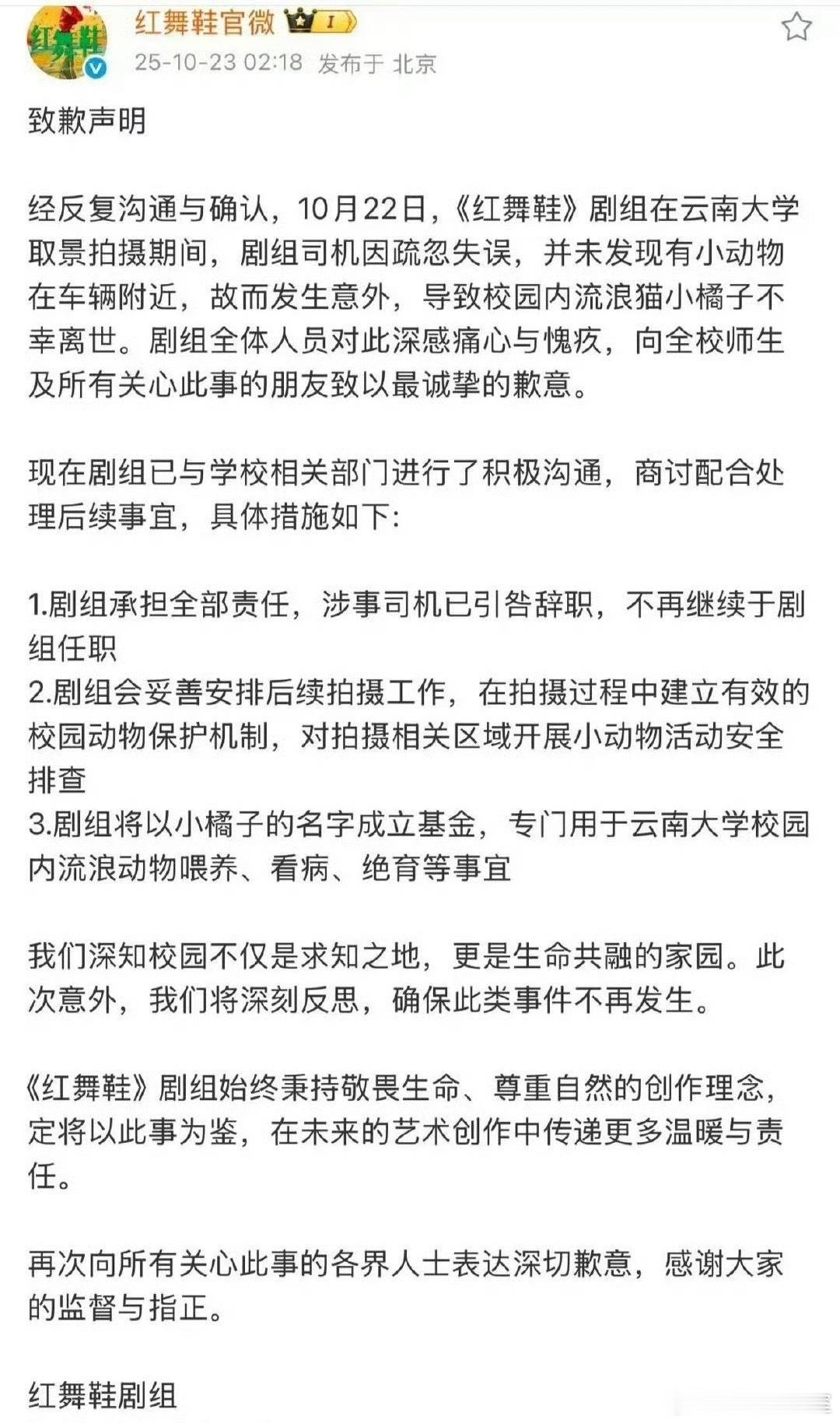 红舞鞋剧组删除致歉声明