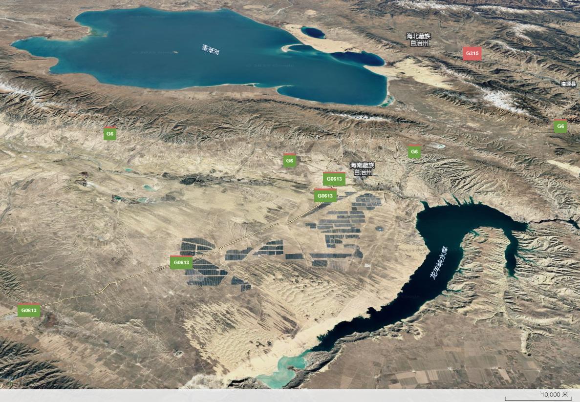 看样子光伏园区在青海湖到龙羊峡水库之间,占地盘是很大。投资600亿以上,一年发电量200亿度,大约对应2000万人城市的生活用电。三峡一年能1000亿度电,还是厉害多了。