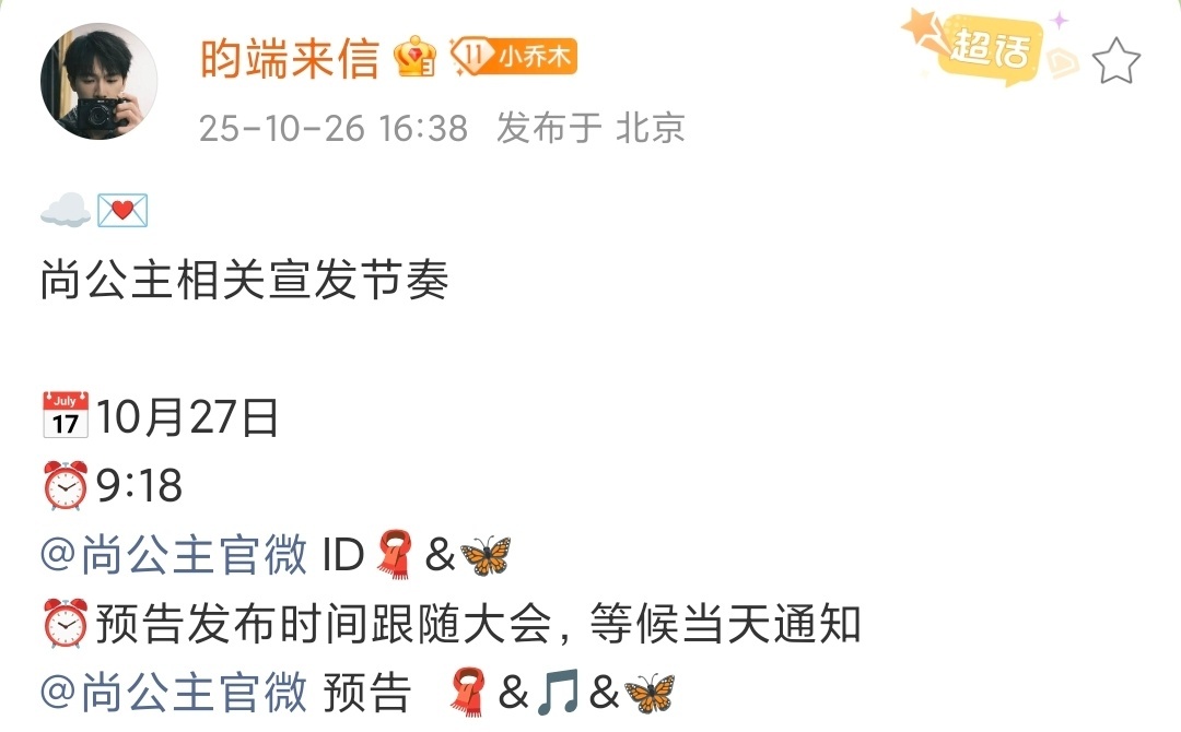 娱乐[超话]尚公主明天有物料尚公主明天发预告尚公主明天发预告,芜湖!等一个预告~