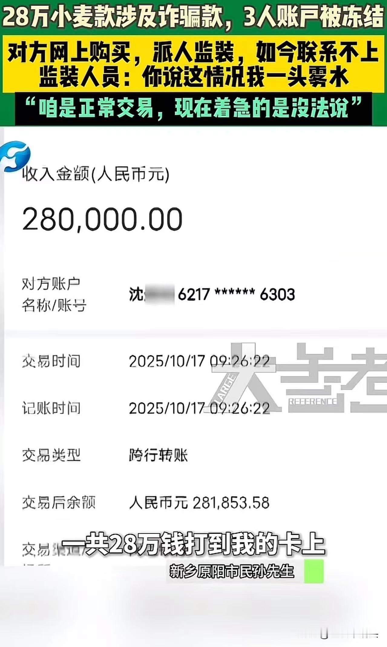“这样下去还怎么做生意?”新乡原阳,母子俩卖粮食被骗,3车小麦100多吨,28万卖出去后账户被冻结!警方:你收到的钱是涉诈资金,小麦也不知去向。网友:正常商业来往,收款方没有方法调查对方资金的合法性,怎么能冻结呢? “这样下去还怎么做生意?”这是新乡原阳一对母子面对突如其来的打击时,心中最真实的呐喊。三车小麦,超过百吨的粮食,价值28万,本应是辛苦耕耘的成果,却在一夜之间变成了“涉诈资金”,账户被冻结,生意陷入停滞。母子俩站在风中,无助又愤怒,心中充满了疑问:我们只是普通的农民,怎么会卷入如此复杂的骗局?他们的故事,折射出一个普遍的社会难题——在信息不对称和监管盲区中,普通人如何保护自己,避免成为“无辜的牺牲品”? 这件事一经曝光,立刻引发了网友们的热议。有的人愤愤不平:“正常的商业来往,收款方根本没有办法调查对方资金的合法性,为什么就能一刀切冻结账户?”也有人质疑:“难道我们就只能任由这些‘高科技’手段肆意操控,普通人根本没有话语权?”更有人感叹:“这不就是典型的‘一刀切’,让人心寒。没有明确的法律保护,普通农民怎么生存?怎么做生意?” 其实,这背后隐藏的,是一个深层次的制度与监管困境。互联网金融、跨境交易、信息碎片化,带来了便利,也带来了风险。银行和监管部门在保护消费者的同时,也在不断追求效率和风险控制的平衡。然而,面对“涉诈资金”这个模糊的概念,很多时候,执法和操作都变得模糊不清。账户被冻结,意味着“疑似涉诈”,但这究竟是不是“确凿的证据”?普通人又该如何维权?这些问题,令人焦虑。 更令人深思的是,普通农民、普通商户在这个复杂的金融环境中,究竟该如何自我保护?答案或许很简单:提高警惕,增强法律意识,学会识别潜在的风险。但更重要的,是制度的完善。我们需要一套更科学、更透明的监管机制,让“冻结”不再成为“随意”——而是建立在充分证据和程序正义基础上的保护措施。 这起事件,也提醒我们每一个人:在信息爆炸、规则模糊的时代,保持理性和警觉比任何时候都重要。不要盲目相信“天上掉馅饼”,也不要被所谓的“高科技”所迷惑。我们要相信,只有制度的完善和法律的公正,才能真正保护像母子俩这样的普通人,让他们的辛苦不再付诸东流。 最后,希望这次事件能引发更多关注:如何建立一个更公平、更透明的金融环境?如何让每一个普通人都能在阳光下做生意、安心生活?这是我们每个人的责任,也是我们共同的期待。让我们一起努力,守护那份属于每个人的公平与正义。 粮食很行诈骗案 玉米骗局 农业新骗局
