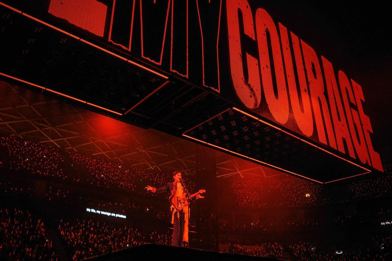 李宇春杭州演唱会直接封神了! 聚光灯“唰”地打亮金色通道, 熟悉旋律一出来, 全场瞬间沸腾! 春春戴着黑色礼帽一步步走上台, 开口就是大合唱——《想唱就唱》 一响起,谁的2005DNA动了? 十八年了, 她再在杭州开唱, 这波回忆杀直接戳心! 摇滚版《无价之姐》还是那么飒, 舞台上的她眼睛发亮, 妥妥的自由皇后! 《冬泳》一唱, 满场都是女性力量在激荡, 鸡皮疙瘩都起来了! 这场视听盛宴, 既有旧时光的温度, 又有新舞台的震撼, 这就是李宇春的魅力啊! 李宇春