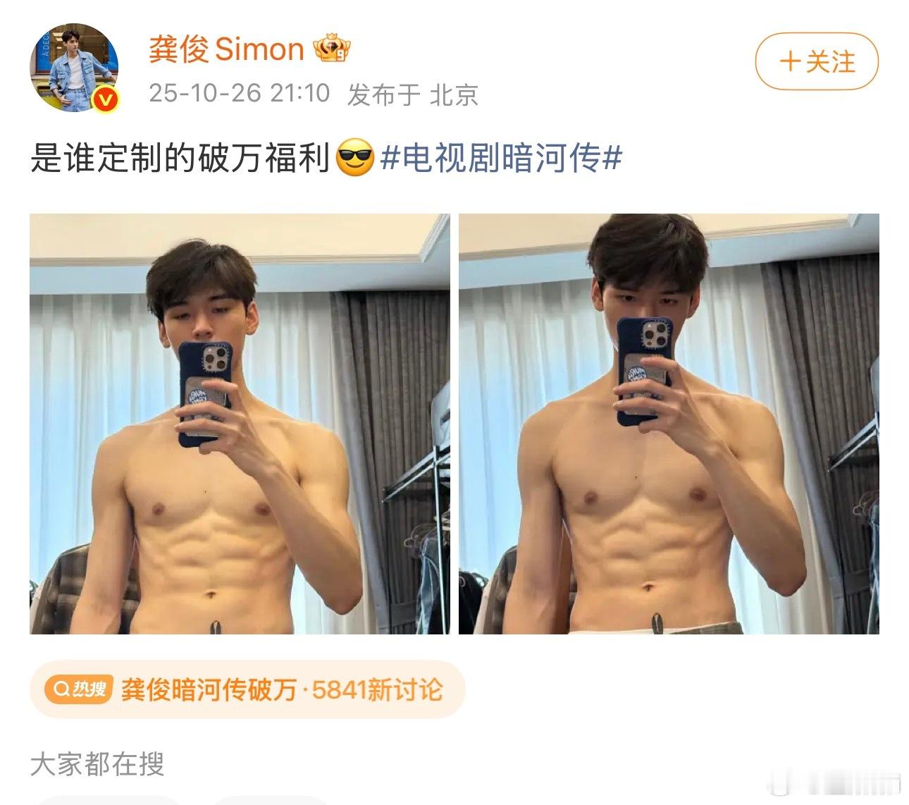 暗河传破万了!!!龚俊的破万福利好大方[流鼻血] 龚俊破万福利是半裸肌肉照