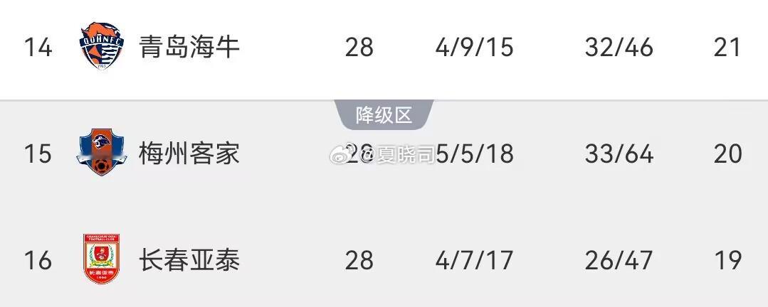 青岛海牛赢了北京国安,中超垫底的又成了梅州和亚泰。