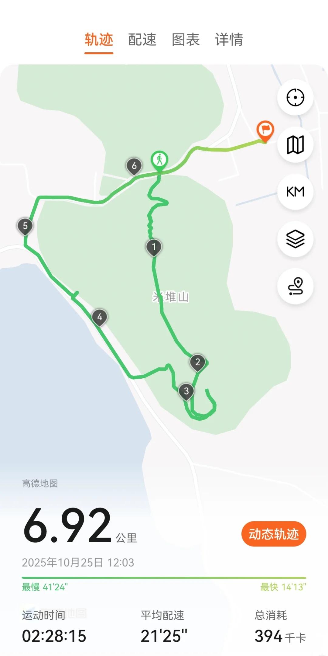 苏州徒步|6km小环线!1.5h躺看太湖的快乐 苏州米堆山「小环线」也太友好了吧!不想走大环线累到瘫,又想抓牢太湖的秋天,这条路线直接把“轻松+出片”焊死了,新手闭眼冲都不慌! ✔导航「米堆山步道入口」,自驾1h到,10元停车随便停(公交坐691路到“庭山村”站,走10分钟也能到)。全程就6km,爬升才150多米,沿途全是树荫,根本不用怕晒黑。 ✔重点是!每走10分钟就有一个“观景位”!山顶向下走的公路绝了,站上去太湖像块蓝宝石铺在眼前,远处的小岛飘在水上,拿手机低角度拍,直接拍出“人在画里”的感觉。累了就坐下来啃个面包,风里全是湖水的清爽,比在奶茶店发呆舒服多了。 ✔今天还偶遇了一只小柴跟着主人徒步,一路摇尾巴超可爱。一路闻着桂花香,有点儿想吃桂花糕了哈哈!路边摘朵小野花别在发间,拍照瞬间有了秋日氛围感~ ✔山下太湖边有好多农家乐、民宿和咖啡馆,找一家咖啡馆,坐在太湖边等日落,真的很惬意~ ⚠️小Tips:带一瓶水就够(别背太重会累,山顶有卖吃的喝的),穿浅色系衣服更出片,下午3点去最好,既能避开人潮,还能赶在下山时看太湖日落,金光洒在湖面真的美哭!(我们今天走得早,中午时分山上人还挺多) 苏州的宝子别再纠结周末去哪了,这条“不费腿又出片”的小环线,真的能让你快乐一整天!苏州旅游 苏州徒步 米堆山徒步 苏州爬山 徒步丈量世界 轻松徒步路线 每周一山 我的徒步日记 城市轻徒步