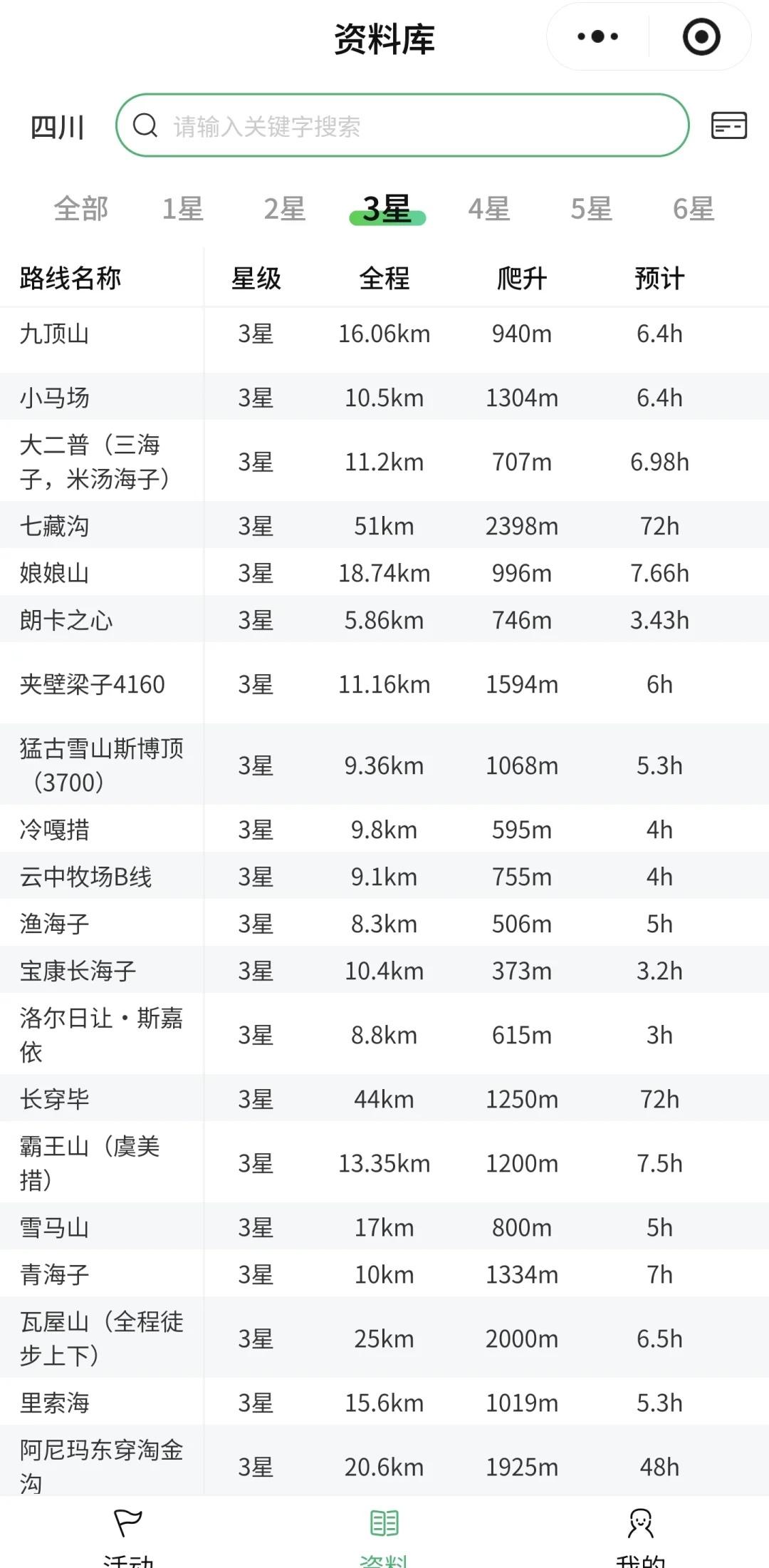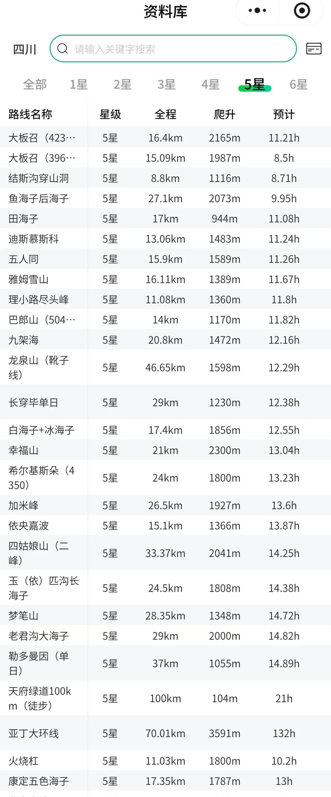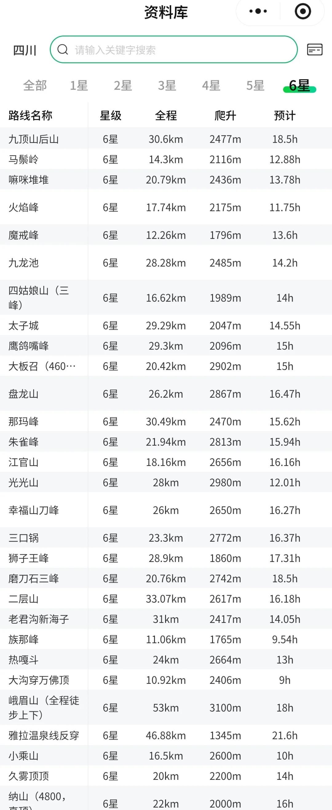 徒步爱好者会很想定居四川吧? 不搜不知道,一搜吓一跳,原来四川有这么多条已知的徒步路线,从1星到6星,涵盖各种难度。如果按照“每周一山”的频率,基本上得用6年时间才能爬完。[吐舌] 徒步圈 徒步丈量世界 成都 一起去徒步登山 徒步天花板