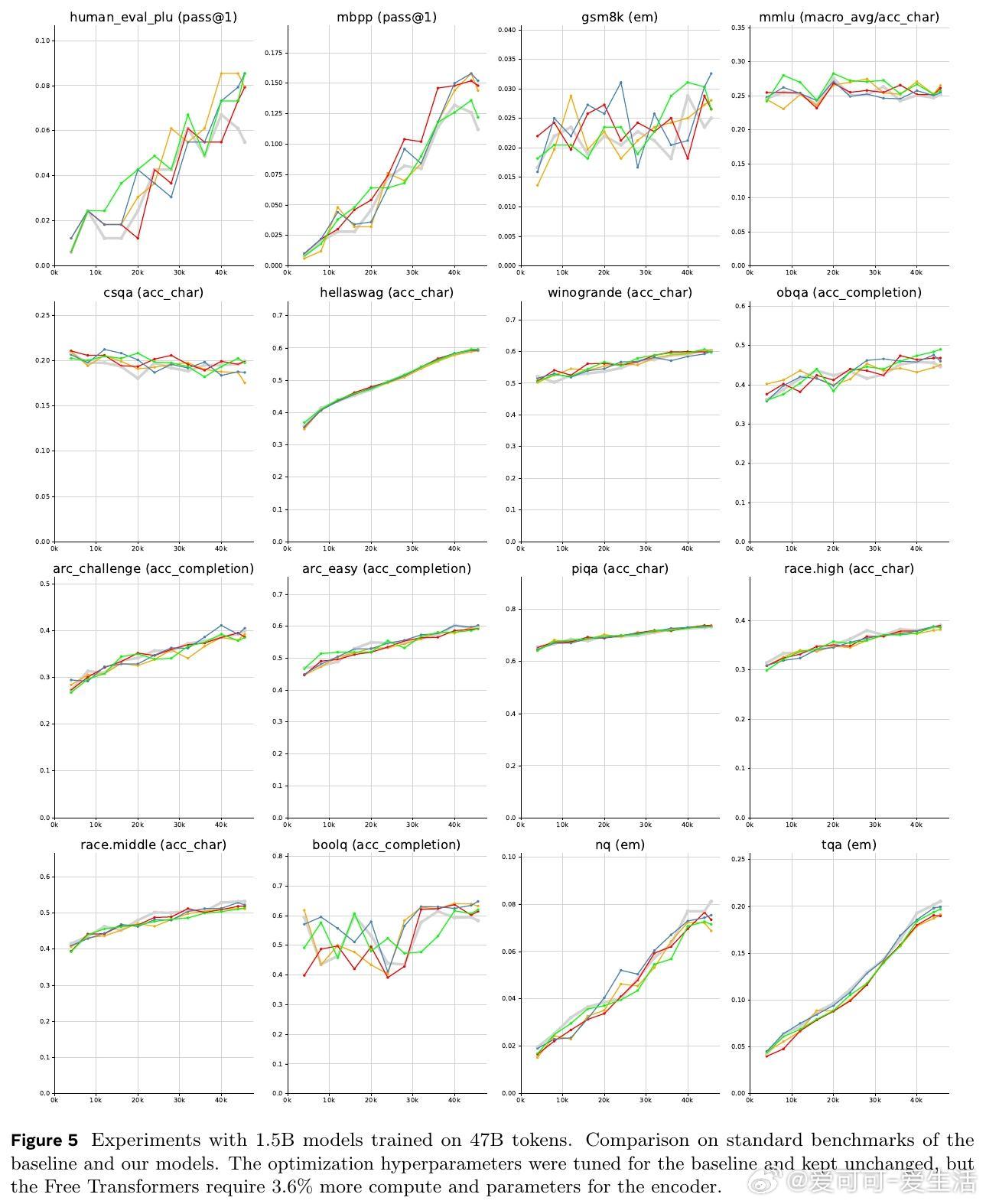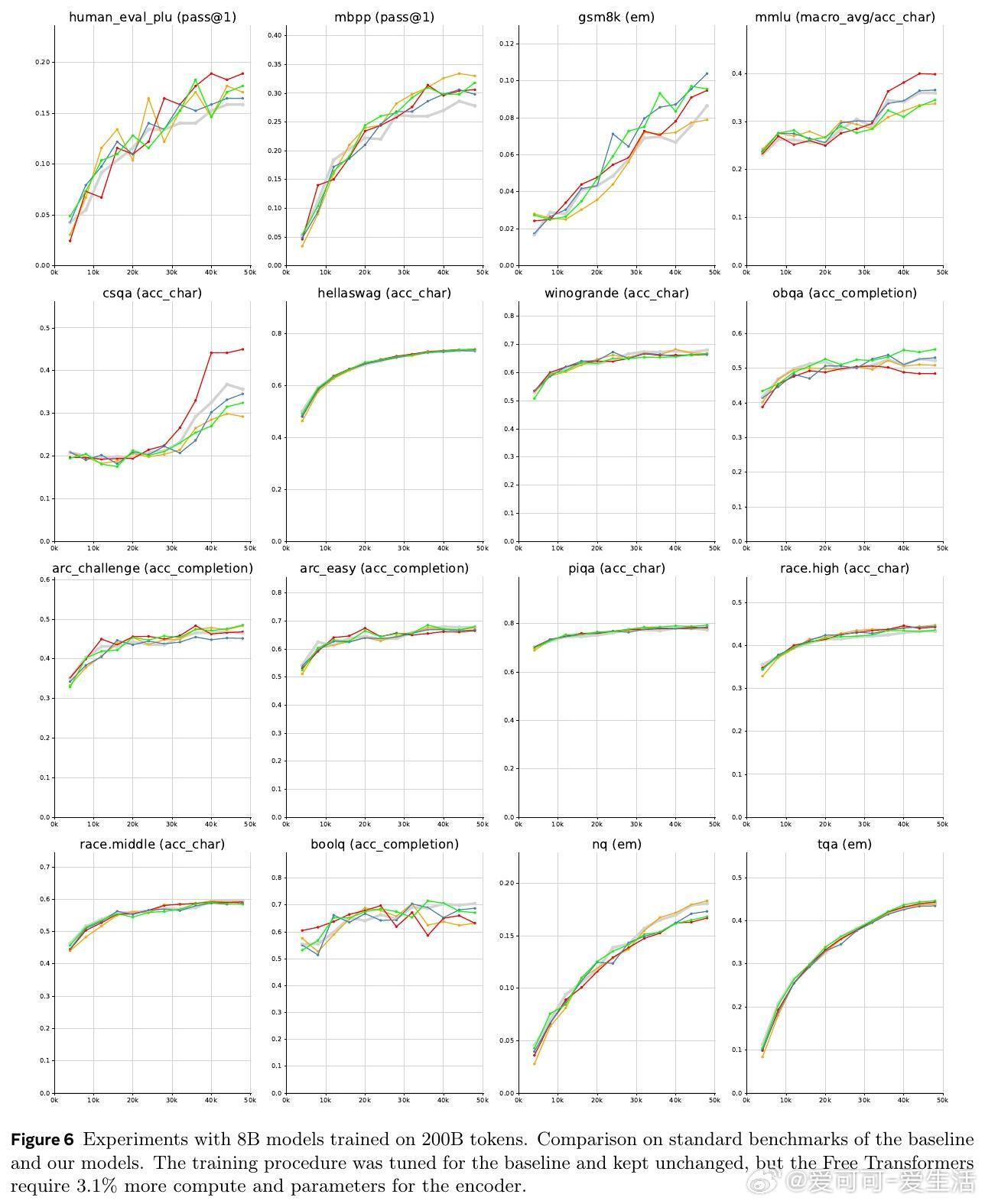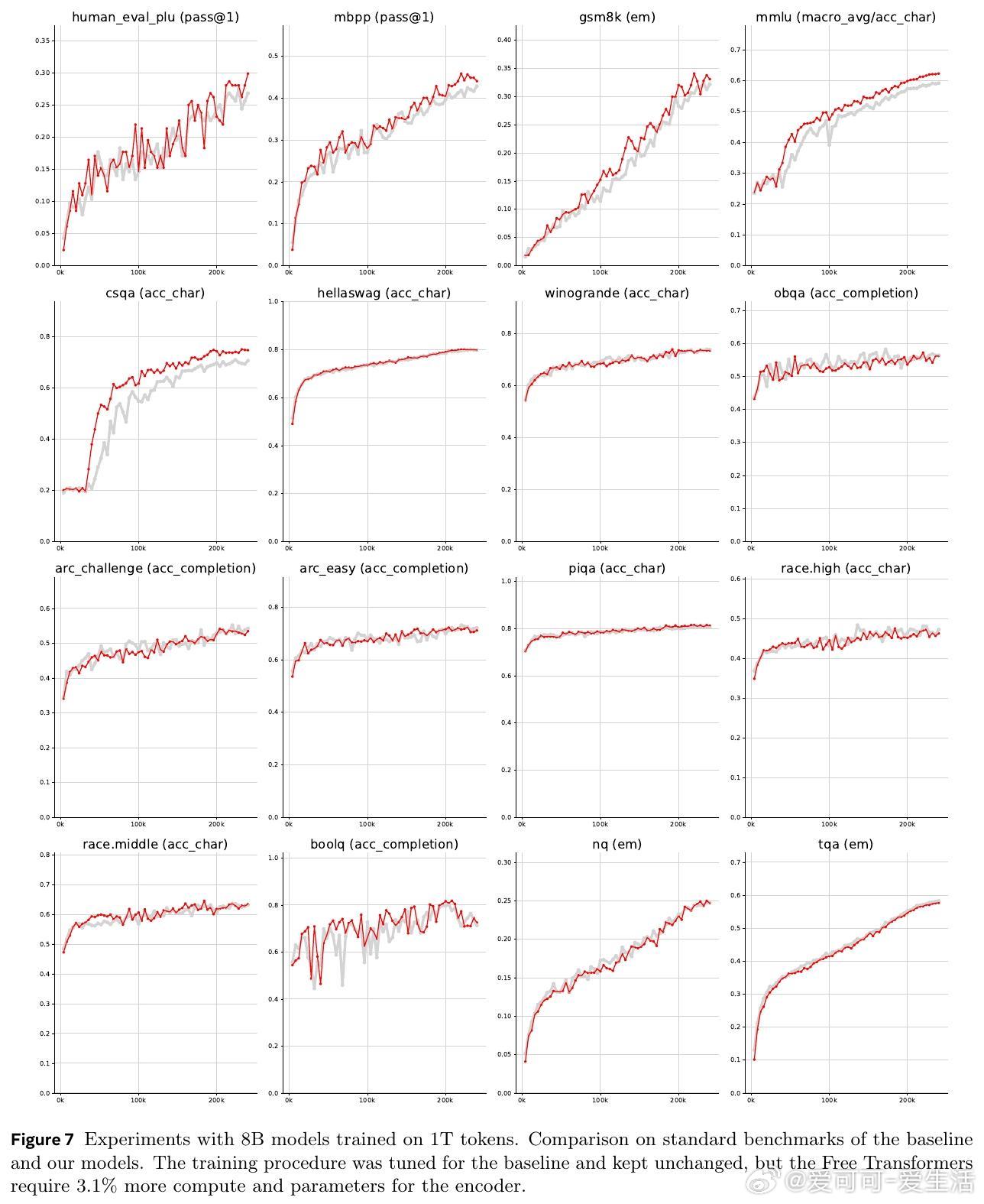 - 8B模型在训练1万亿tokens后,进一步验证了Free Transformer的稳定性和性能提升。