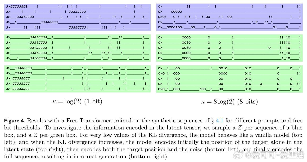 - 在合成数据任务中,Free Transformer能成功编码序列中关键结构(如目标位置),展现潜变量效果。