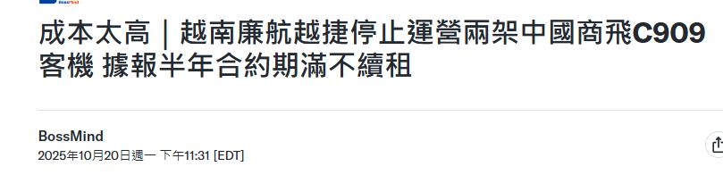 咱们的C909客机,在越南吭哧吭哧飞了半年,10月18号租期一到,直接让人给“退