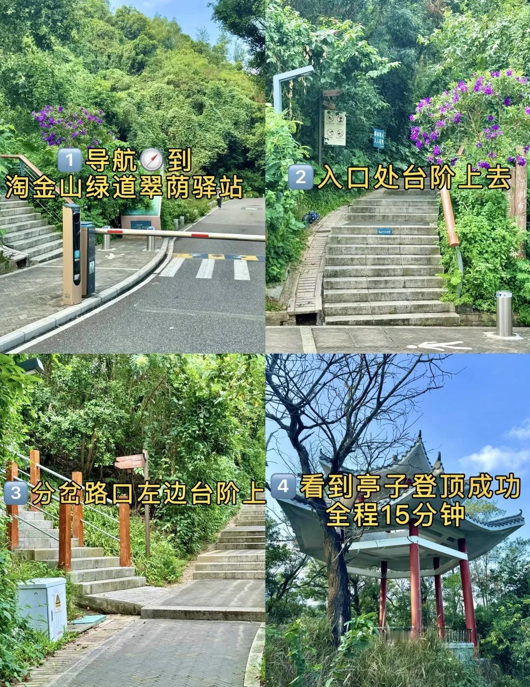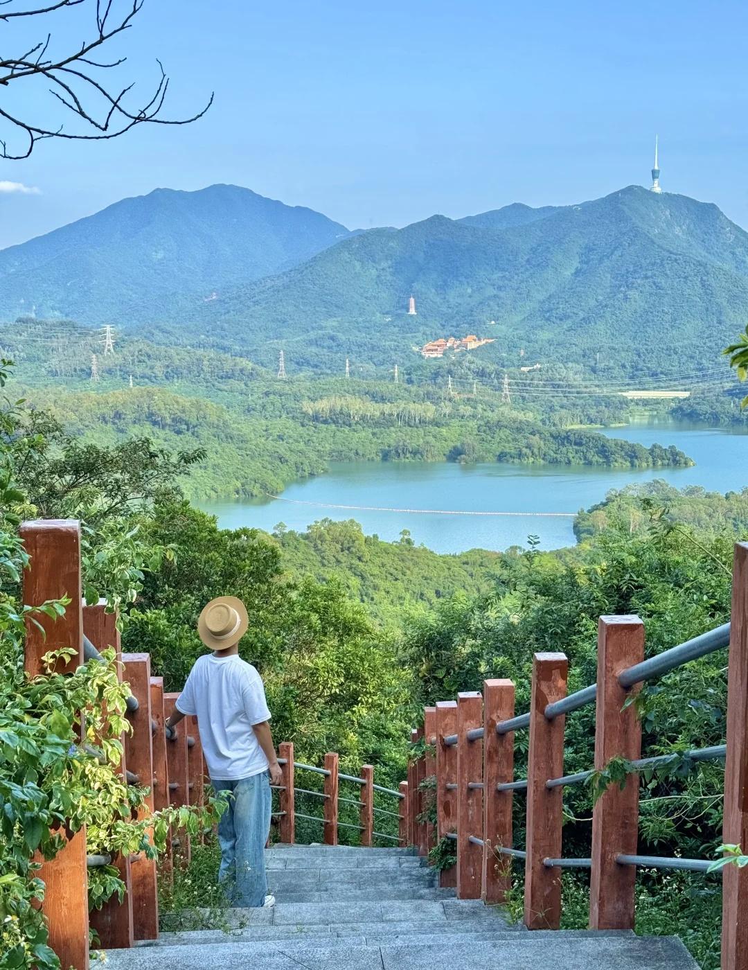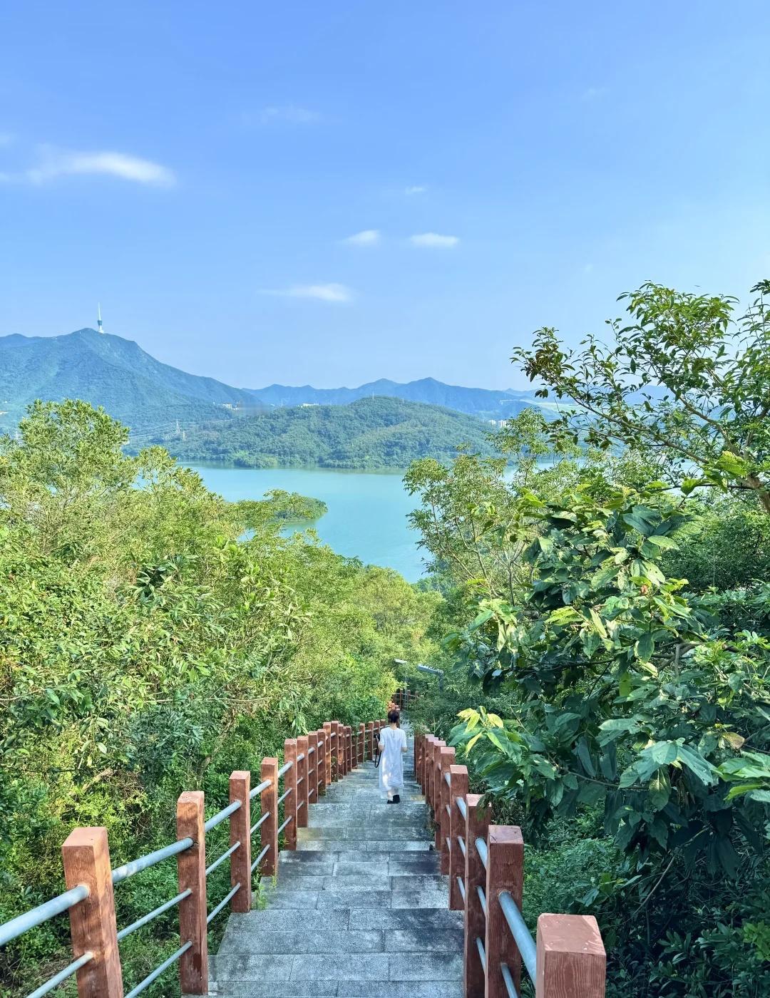 深圳好看的风景都是免费的,值得去亿次! 深圳版千岛湖,15分钟就能登顶,对于懒人超友好,山顶面朝梧桐山,远眺弘法寺,俯瞰深圳水库,而且途中一路都有树木遮荫🌳,全程超惬意😌 ✅路线攻略 图4有详细的路线图,入口如图4所示,到第一个分岔口往左边楼梯直上,一路爬到金山亭就登顶了 📍淘金山绿道翠荫驿站 🎫门票:免费 🚇地铁:5号线布心站D口,下地铁步行十几分钟或打车到达翠荫驿站 🚗自驾:导航淘金山绿道翠荫驿站🅿️停车场(提前在gzh美丽深圳上预约停车) ‼️个人TIps 绿植较多,记得做好防蚊措施 建议下午三四点来爬山,拍照打卡很出片 外人节 户外48小时 十一户外漫游 深圳周末去哪儿 淘金山绿道 小众打卡地 户外徒步 千岛湖 深圳爬山