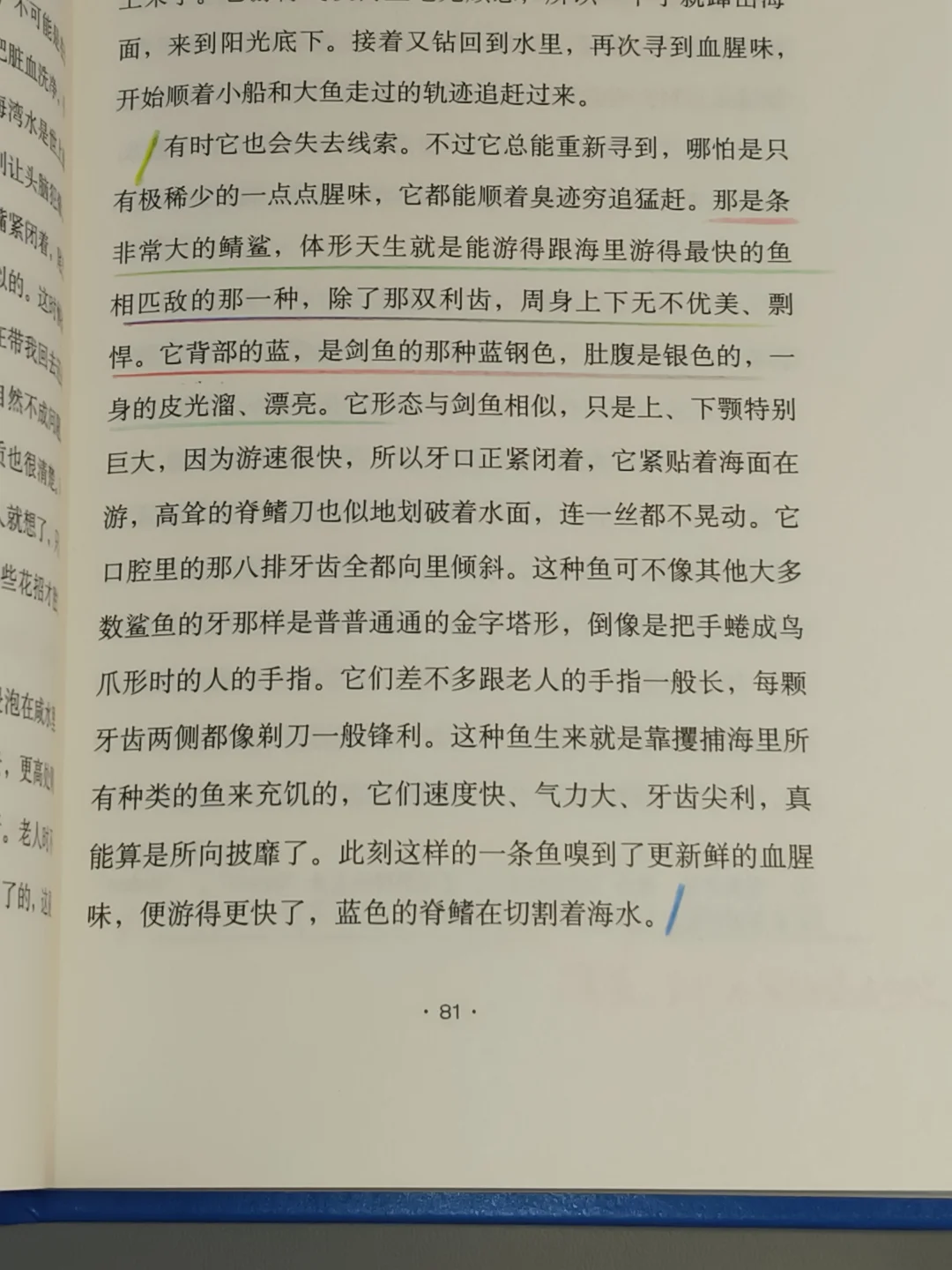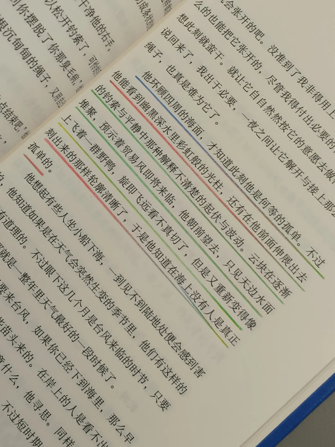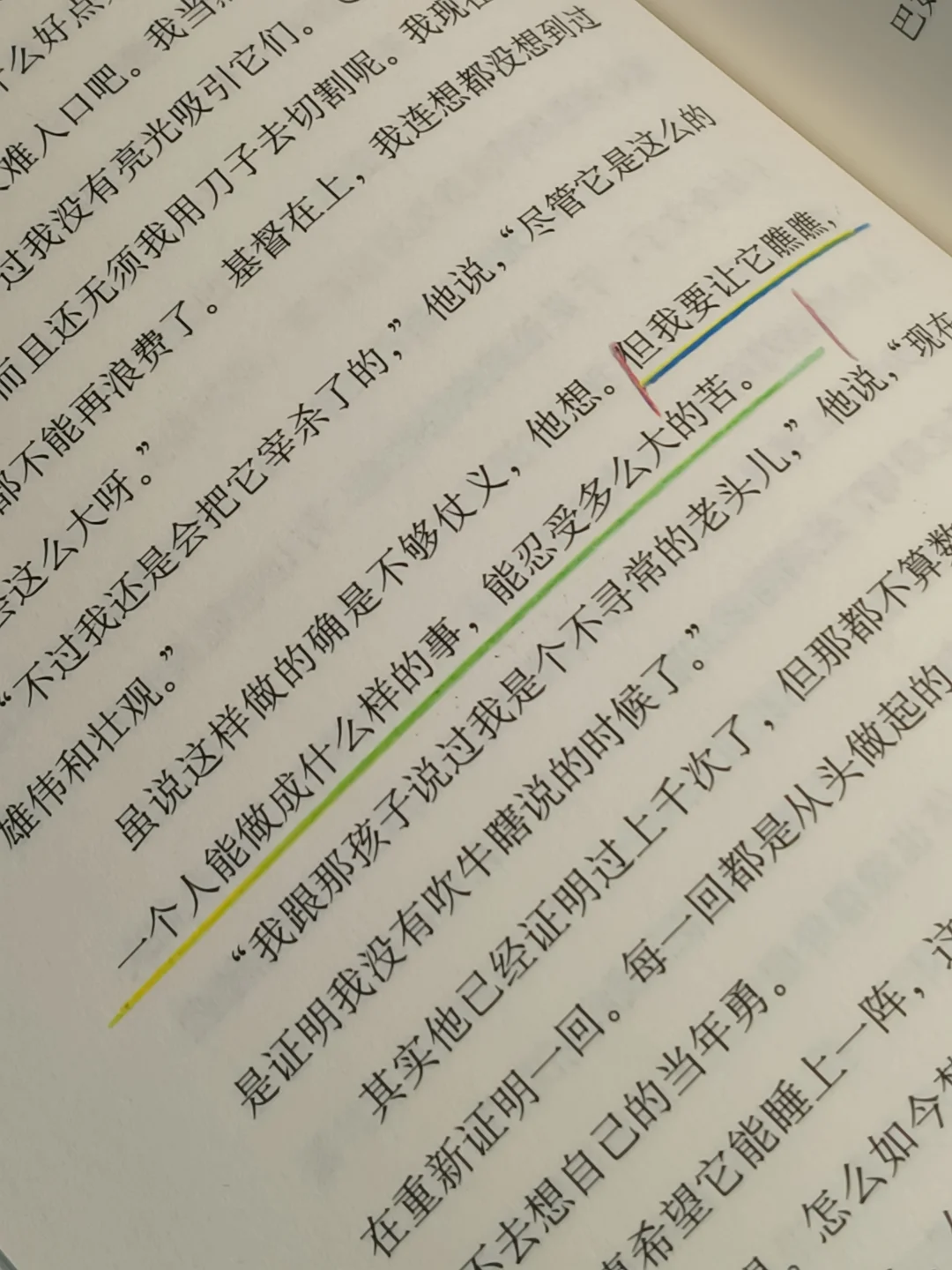 每每捧读,自会沉浸,书中老人孤独、绝望与永不言弃的炽热,尽数笼罩在我的心头,震撼与感动填满了我。