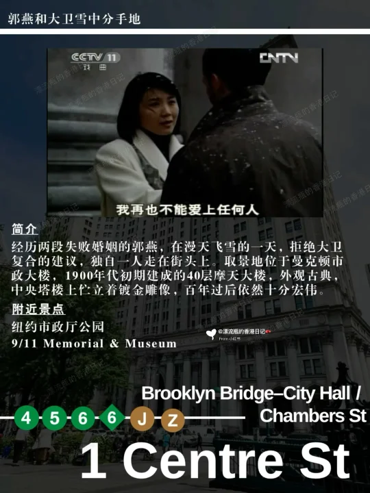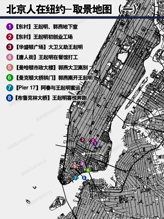 由于取景地众多,所以这次先为大家揭晓《北京人在纽约》在曼克顿downtown的取景地,并且加了拍摄地点🍾附近的地铁站,让大家可以跟着这个路线,回到各个纽约的取景地,细味一下多年来的变化