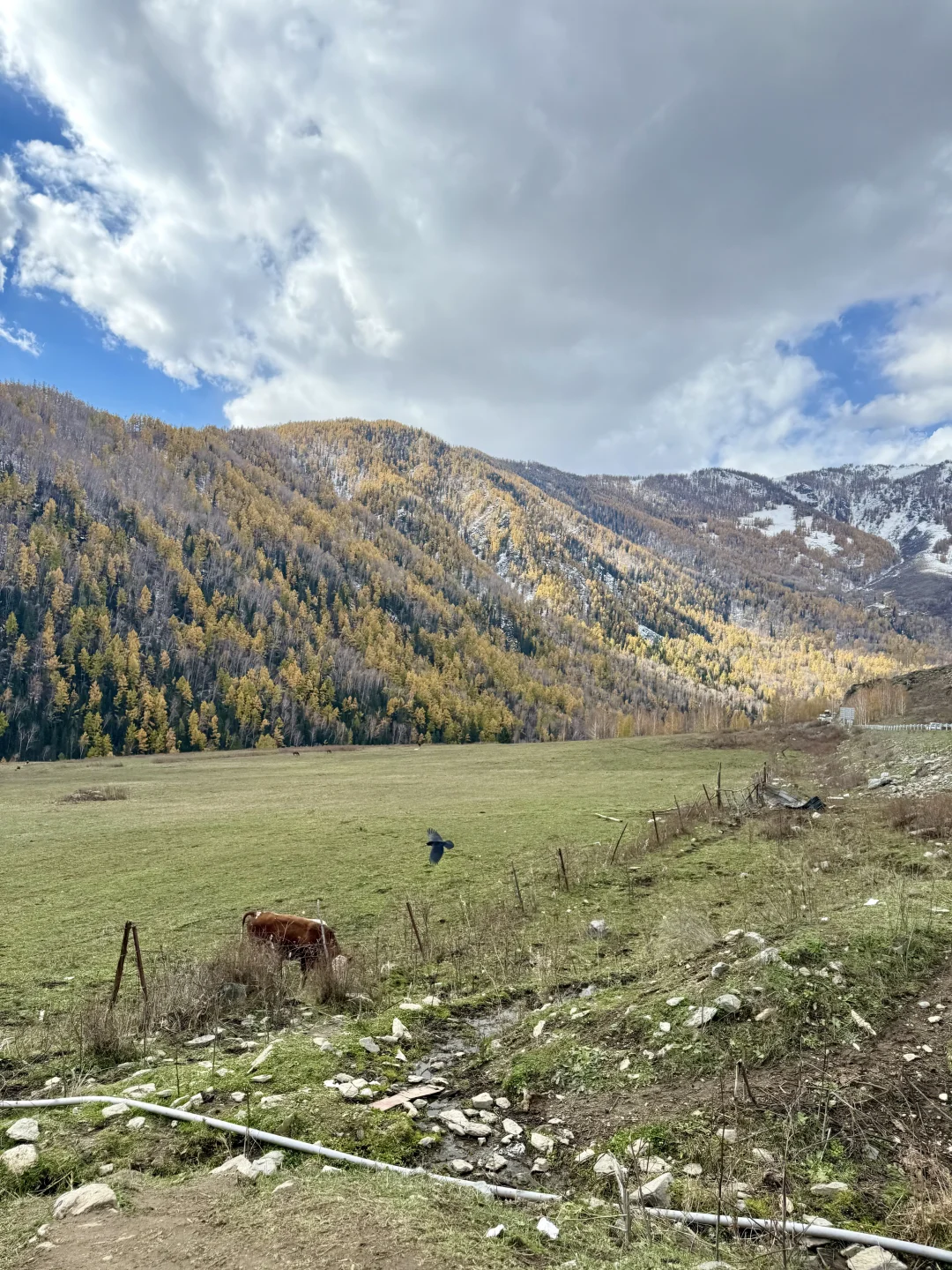 完全可以live图直出氛围感绝了 从禾木村出来一路上经历了秋季🍂、雪景❄️、日落🌅。 日落下的每个人都很有故事感 而我只是在认真思考晚饭吃什么🫕