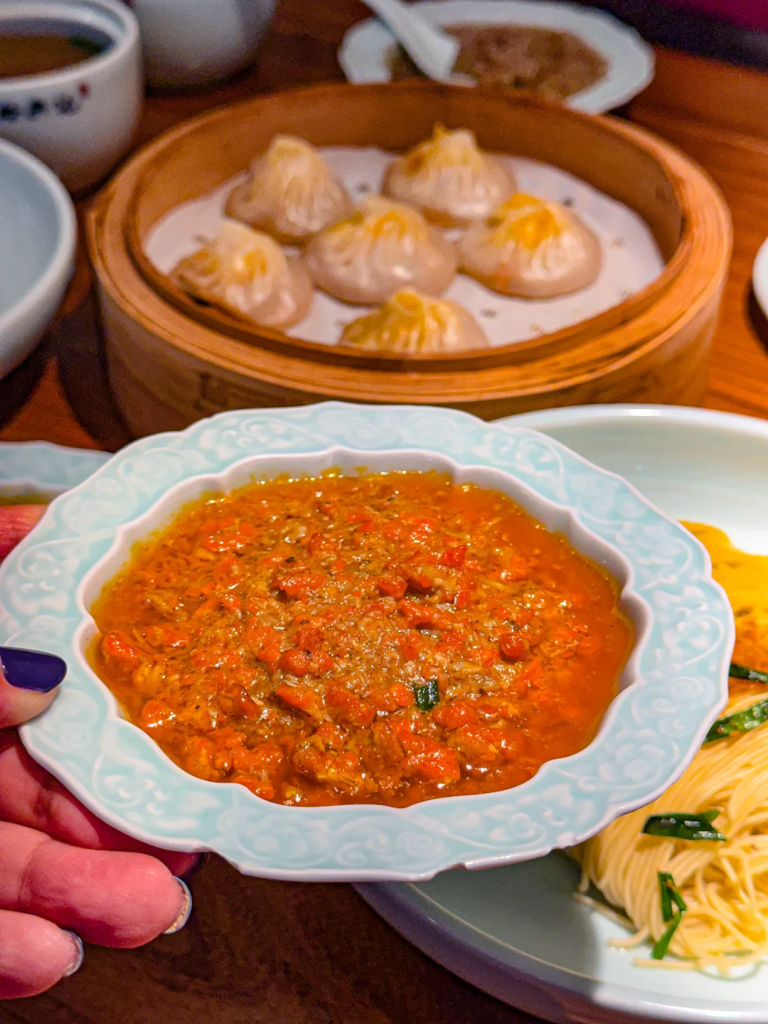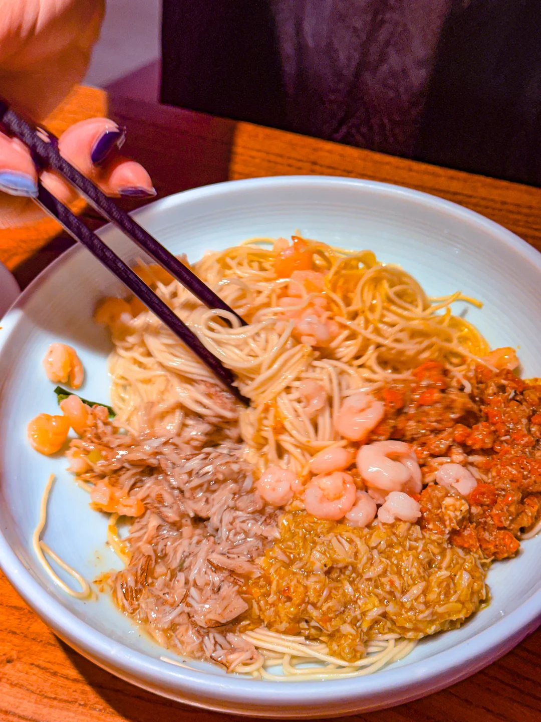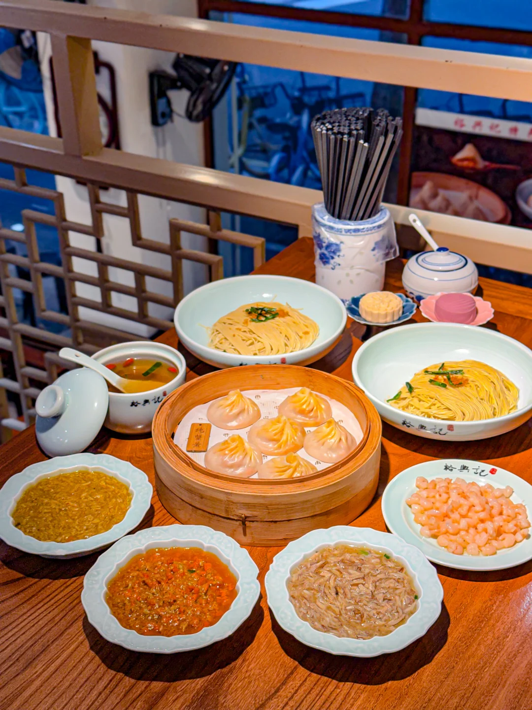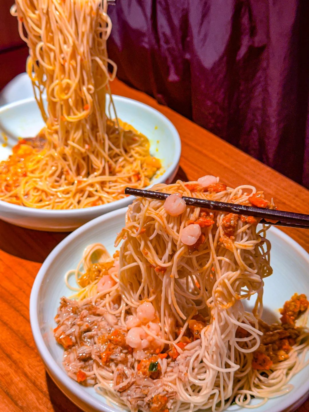 苏州百年 老 字号果然名不虚传,他家的蟹黄面真是jue了!每次路过都忍不住要进来解解馋🤩 趁着周末约上闺蜜又来打卡经典「蟹天蟹地双人套餐」🦀 金灿灿的蟹黄、鲜甜的蟹腿肉、浓郁的蟹粉…… 光是看着就让人疯狂心动!把满满三碟蟹料浇在劲道的苏式拌面上,再铺上Q弹的手剥河虾仁,搅拌均匀后每根面条都裹着金黄…这口感简直太上头了!!