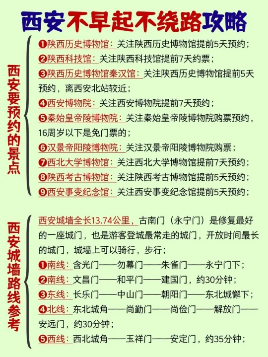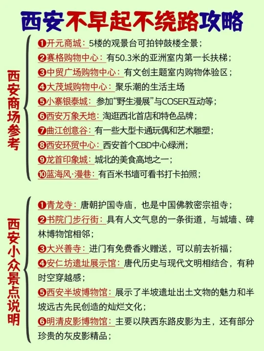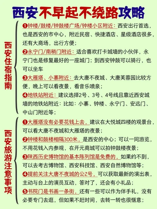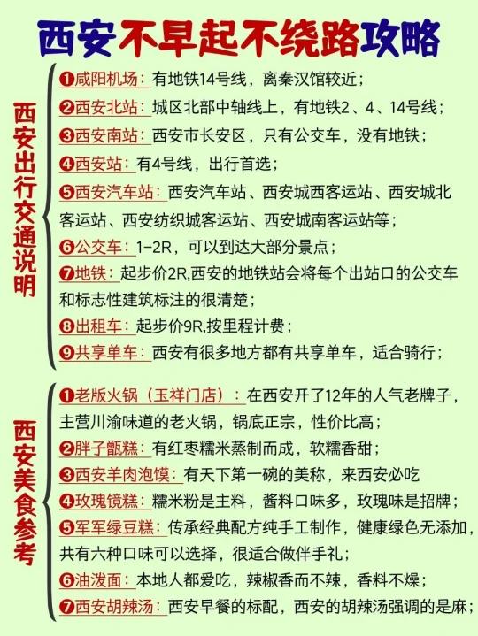 淡季来西安真的很爽,拍照、打卡一点也不挤!而且和小伙伴一起漫游真的很惬意! 温馨提示 ❤西安是一座很骑行的城市,共享单车随处可见,真的很方便! ❤西安地铁站将地面上的标志性建筑及出口的公交车都标注的很清楚,特别人性化! ❤西安的道路是车让人,心目中的份量坦然而见! 来西安旅游前,建议先将景点预约好,不然进不去! 最后,秋冬季节来西安旅游一定要查看好天气情况,酌情准备好衣物! 西安旅游西安旅游攻略西安旅行攻略西安打卡大唐不夜城小众旅行西安美食西安旅游避雷西安钟楼西安鼓楼