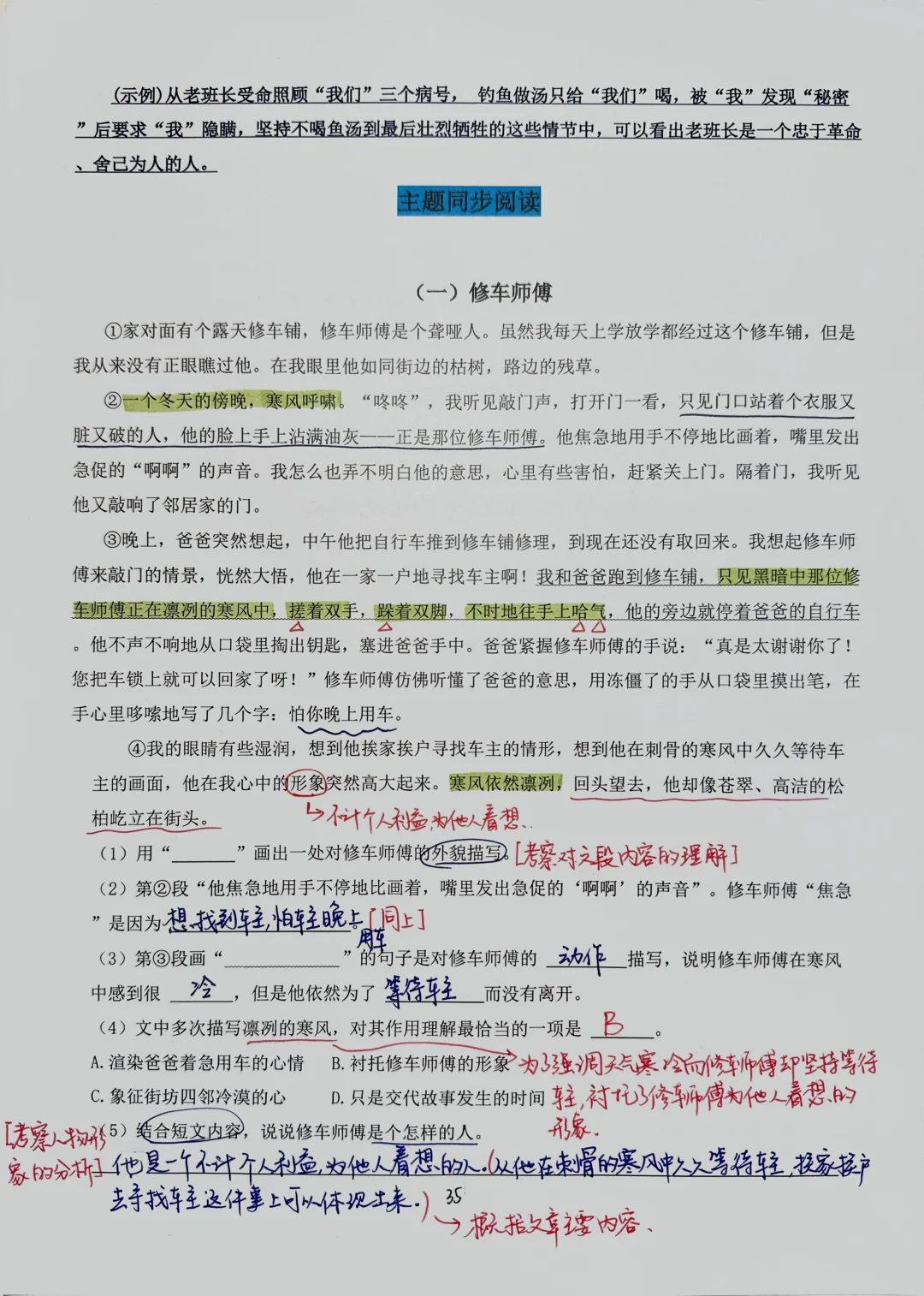 【六上语文】第四单元阅读理解考察重点来了‼️