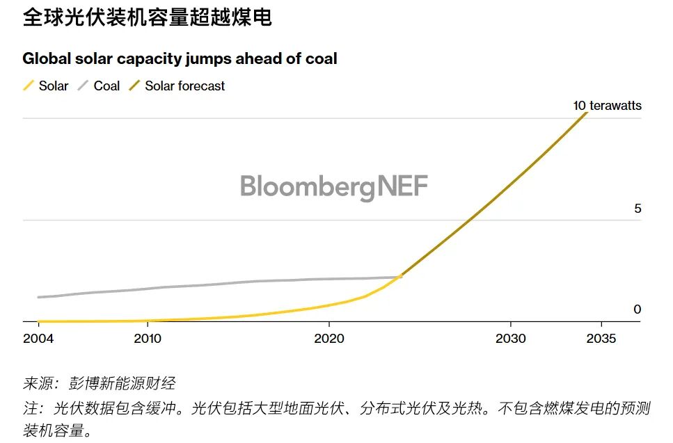 2024年全球新增装机容量中,光伏占比达75%,高于2023年的72%。彭博新能源财经预测,到2035年全球光伏装机容量将达10.9TW——几乎是当前水平的五倍。