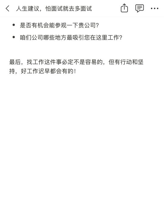 如果你能站在用人方的思路上去理解面试这件事,更不会有那么大的压力了。即使是回答不上的问题,只要展现出了自己的主动学习能力、持续学习能力以及执行力。虽然没有任何经验,但让面试官觉得培养起来比较轻松,那也是非常有戏的,毕竟现在这个求职市场上“靠谱”也是难能可贵的。