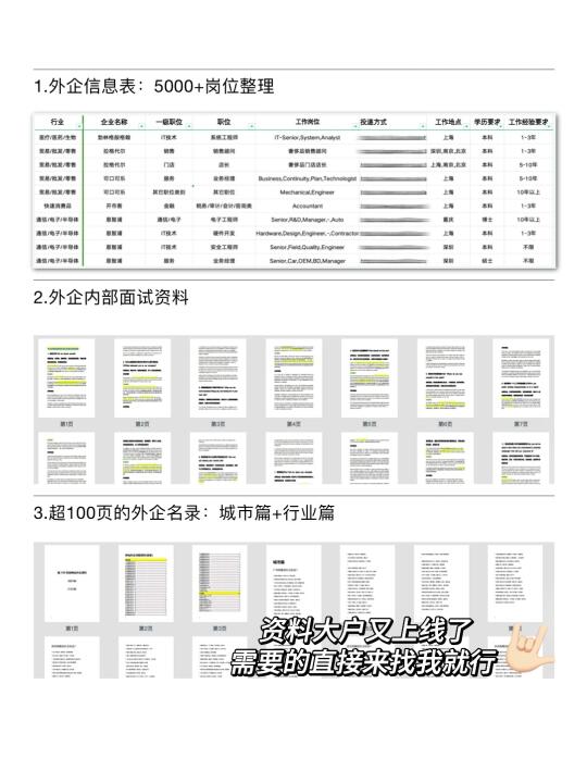 🔎p3是大家一直催我整理的外企资料,包括有5000+外企信息、内部面试资料、还有超100页的神仙外企名录,需要的直接来找我就行
