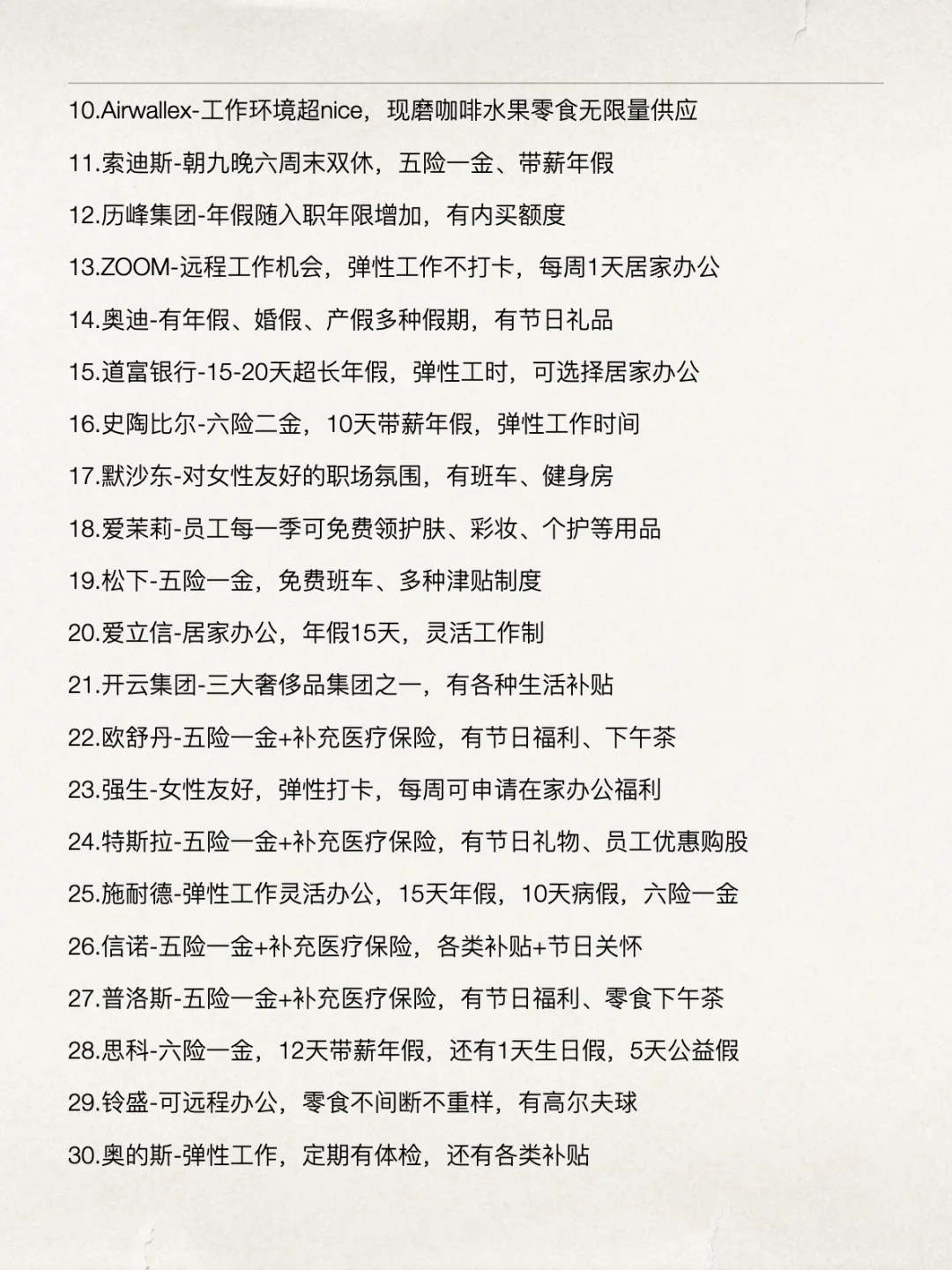 🔸很多外企可以弹性上下班,而且支持居家办公的大部分都是外企,而且年假也是10天起步,随年限增加,高的能有20-30天,整体氛围也好、更加人性化