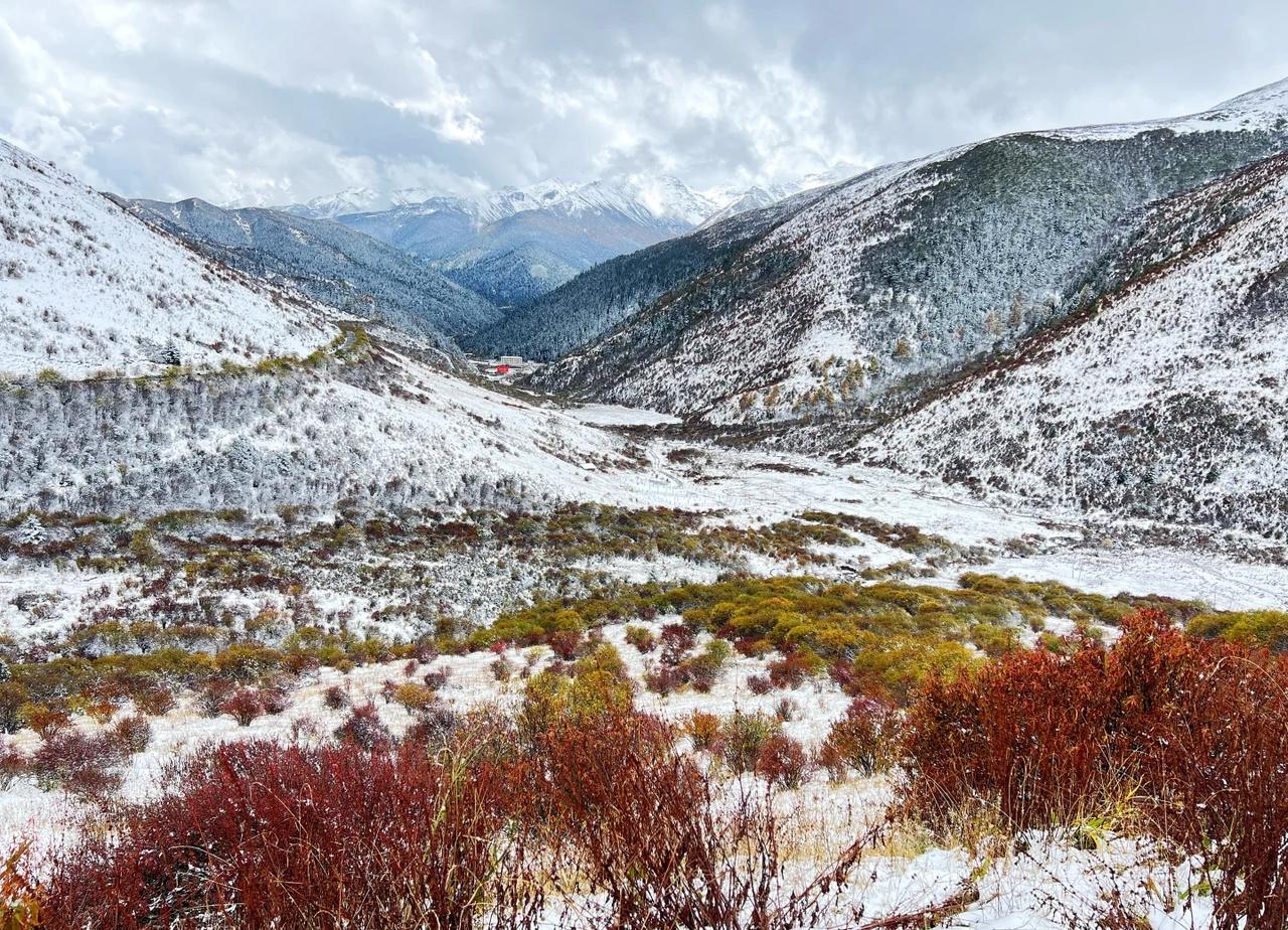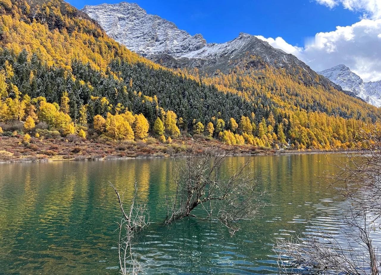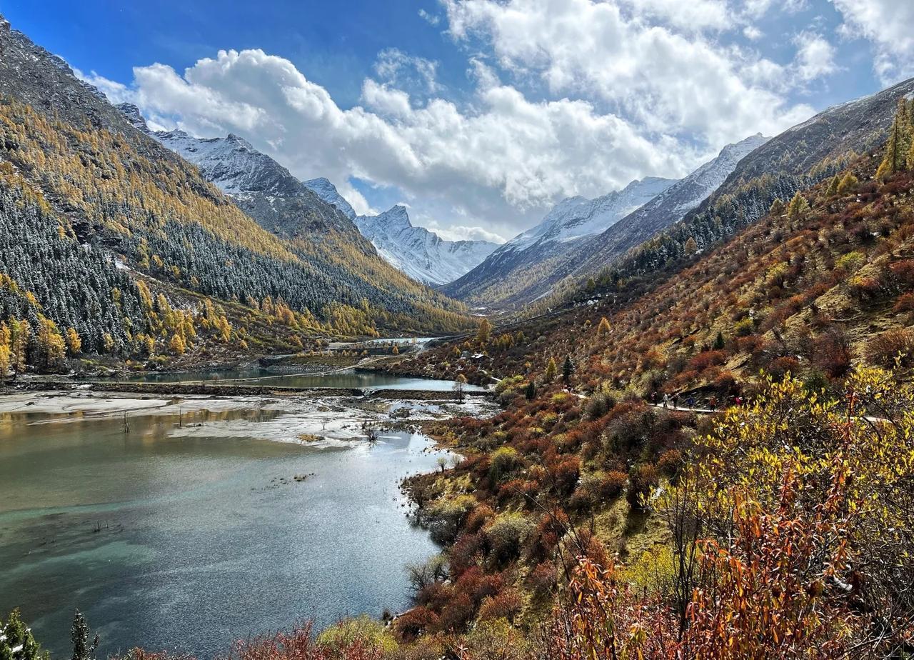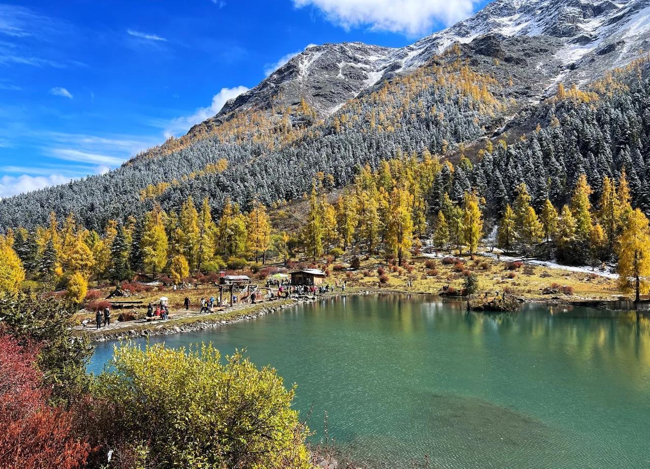 苏D双休特种兵之48小时闪现川西赏顶级秋景 遗憾错过了九月的大兴安岭秋景,那么十月底来场说走就走的川西赏秋徒步特种兵之旅吧。这次川西赏秋本想去党龄徒步,最后阴差阳错选择了玛嘉沟,在雪景的加持下玛嘉沟的秋色无愧川西顶级。 Day0⃣️✈️常州奔牛-成都天府MU9926 18:25-21:05🚗成都天府-理县入住21:40-00:40机场租车,自驾到阿坝州理县入住,入住酒店老板人很好,听说我们是江苏来的,拉着我们又是吃苹果又是吃核桃,都是老板自家种的,新鲜! Day1⃣️🚗8:30-12:00民宿早餐后出发小金县玛嘉沟,大早上的阴雨绵绵,一直担心天气会不好,一路经米亚罗至马尔康下高速,转马小路去玛嘉沟。一路上景色很好,出了米亚罗三号隧道就是雪林,这时候慢慢出了太阳,阳光洒在山坡上非常好看!下高速转马小路后没有选择走梦笔山隧道,而是选择了翻越梦笔山垭口,一路上随着海拔逐渐升高,植被不断变化,由于垭口在雪线上而且前一晚下雪,非常幸运看到了极致的雪景,成了此行的点睛之笔。(p2-p6)🚶12:00-17:30到达玛嘉沟游客服务中心,之前看到川超活动,直接0元购门票进景区,只需消费35元购买摆渡车票。不得不说山里的天气真是变化莫测,前一秒还暴雪大作,下一秒就阳光明媚,幸运的是我们每到一个海子,阳光都恰到好处的穿过云层洒在彩林之上。如果说九寨沟的秋景是秀气,那玛嘉沟的秋景则是磅礴,有雪山,有海子,有彩林,关键是人少。秋天下午三点到四点的时候是拍摄曲美措最好的时候,太阳恰到好处的来到西边,阳光洒在海子东边的山坡上,把整体的饱和度提升了三个档次。(p7-p13)🚗17:45-19:00玛嘉沟出发前往小金县住宿,晚餐牦牛肉火锅加啤酒,为美好的一天干杯🍻 Day2⃣️🚗7:30-11:00民宿早餐后出发,走理小路往理县方向出发。今天天气不佳,山下阴雨绵绵,山上雪花片片,由于山上大雾,缺少阳光即使有雪林也比昨天逊色不少,一路上都几乎没怎么拍照,理小路整体还是值得一去的,相信天气好的时候也是封神的存在。(p14-p15)🍴13:00从理县开车到都江堰午餐,简简单单吃了顿川菜,吃饱喝足后出发天府机场。🚗16:00到天府机场还车。✈️成都天府-常州奔牛17:25-20:00 CA2672 秋天去看彩林 秋天的自然景色 雪山下的秋天