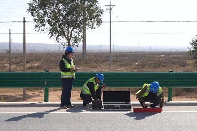 10月26日,在即将通车的国道307靖边至定边段改建路段上,中心试验室检测人员正手持标线逆反射测量仪,对道路标线进行通车前最后一次系统检测,标志着该路段通车进入倒计时。