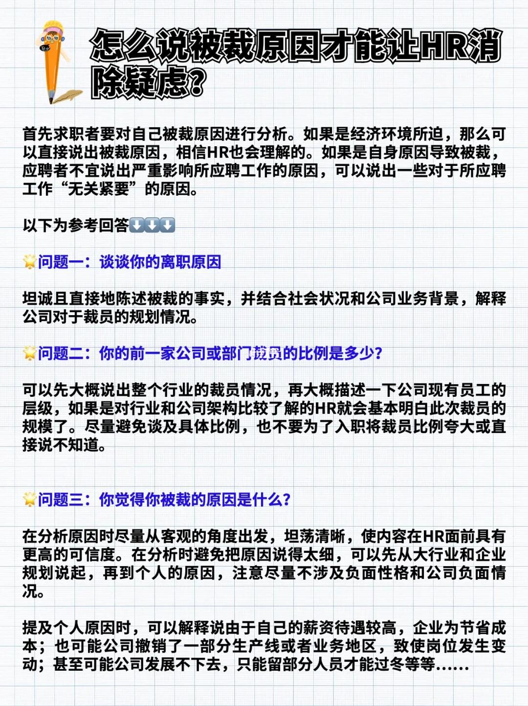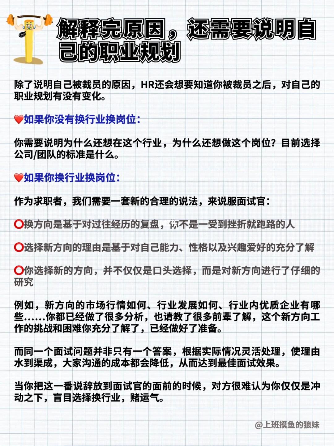 💙分析自己被裁员的原因,不要说是自己的锅,可以提经济形势、 公司决策等(图3⃣️)