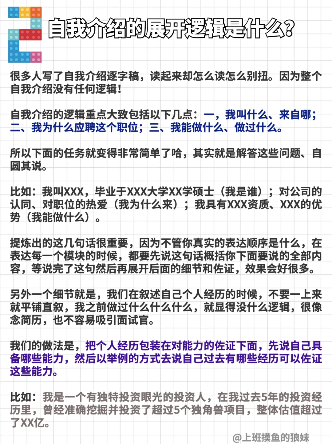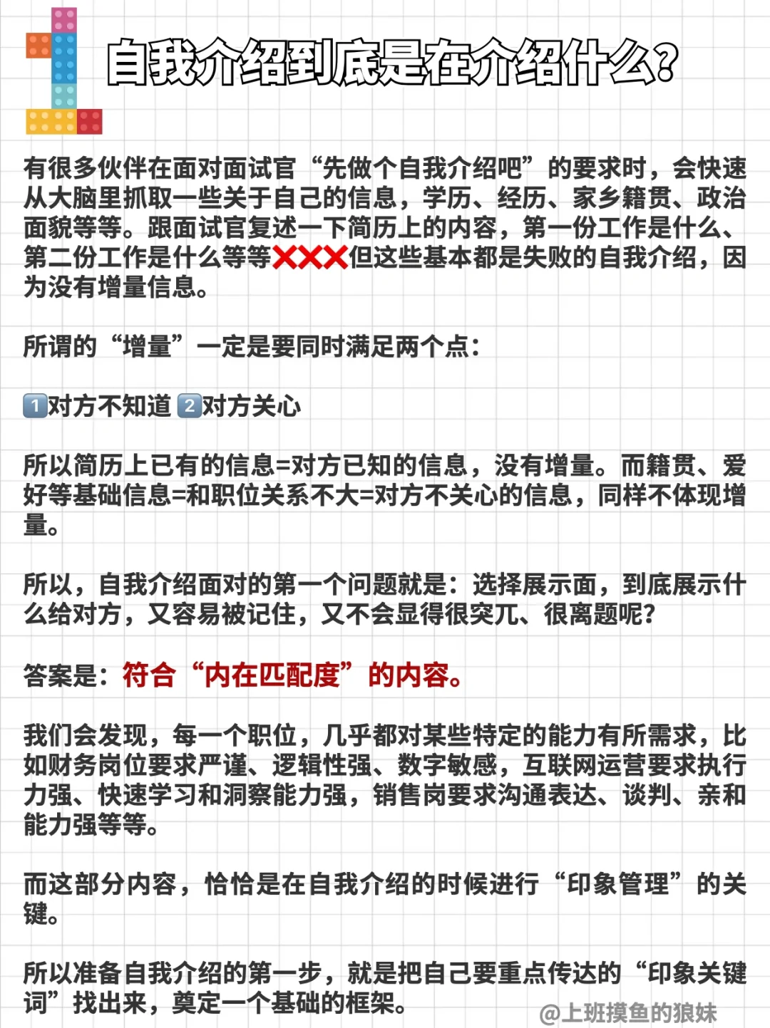 很多人在做自我介绍之前会习惯整理一个逐字稿,把自己想要表达的要点都写在上面。