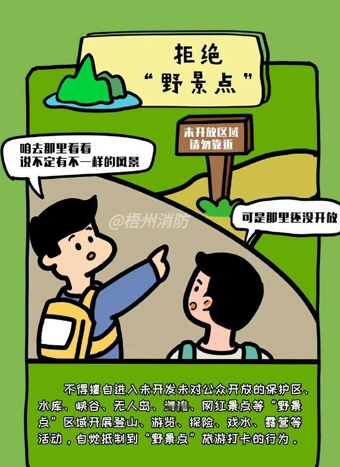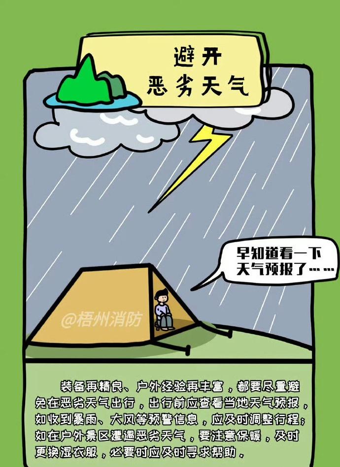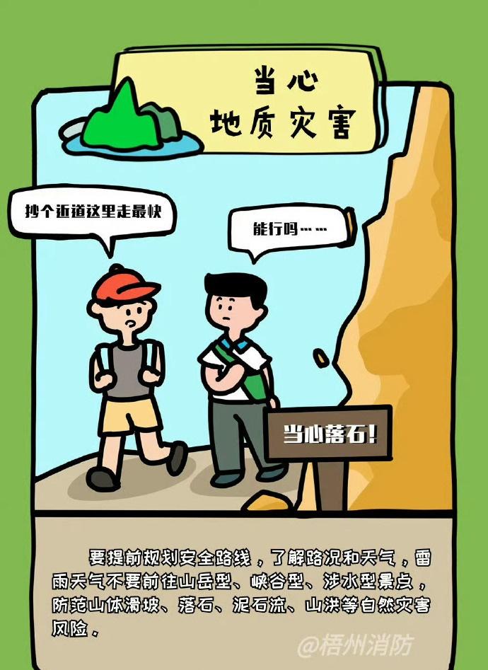 【安仔科普时间 户外登山徒步牢记这几点】3人在深圳一地质公园徒步时遇难 痛心!近年来,登山徒步等户外运动成为许多人的心头好。亲近自然、领略大美风光的同时,一定要充分了解目的地的天气、地形,做好行前计划、掌握户外避险知识等。此外,要特别注意,不盲目探险,不爬野山、荒山,不到未开发的区域冒险;如突遇雷雨及时撤离,远离陡坡河道。量力而行勿透支体力,加强自身安全防范,安全第一!(广西消防)