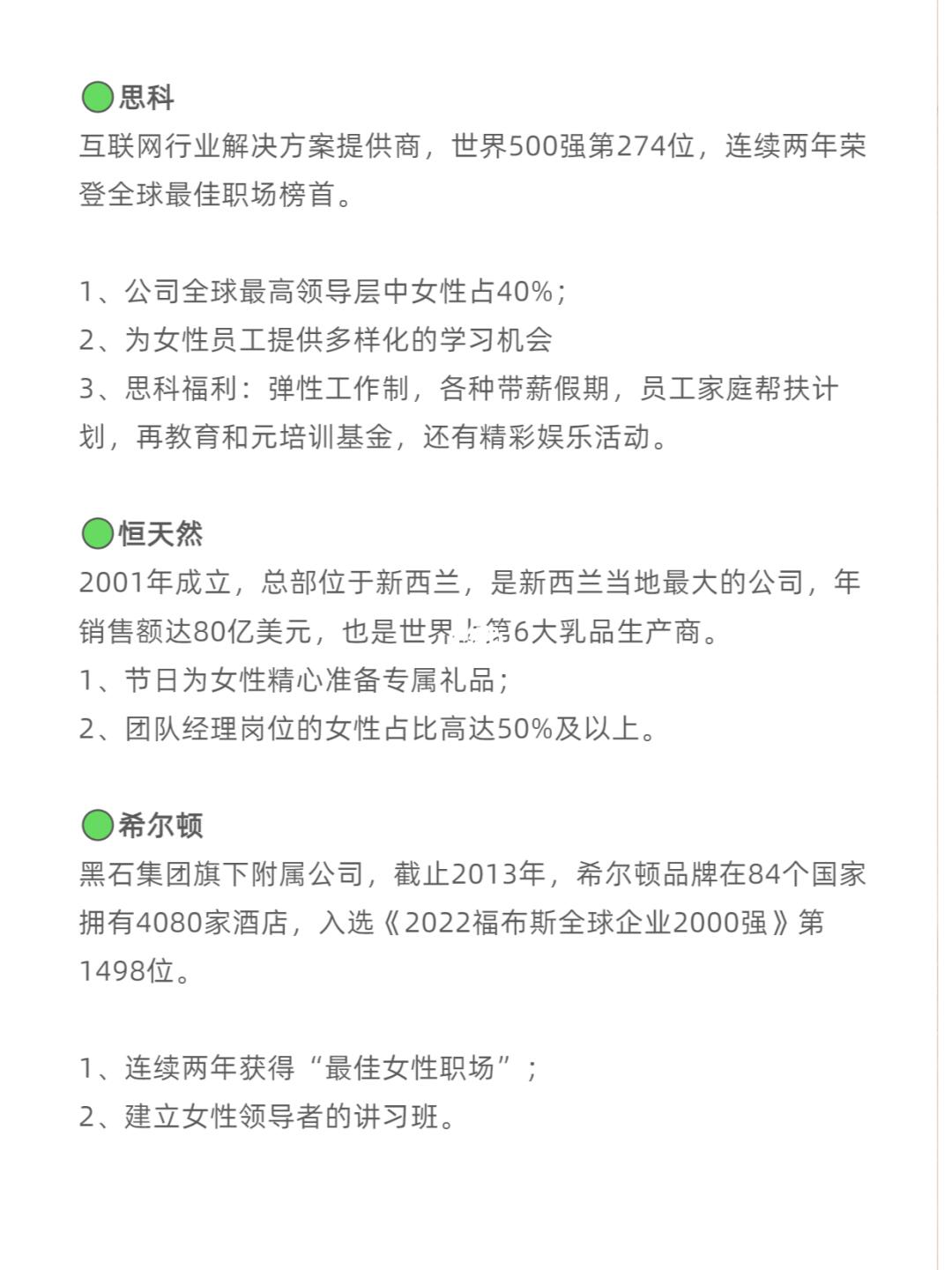 今天狼妹也整理了12家宝藏外企的名单,很适合女生~