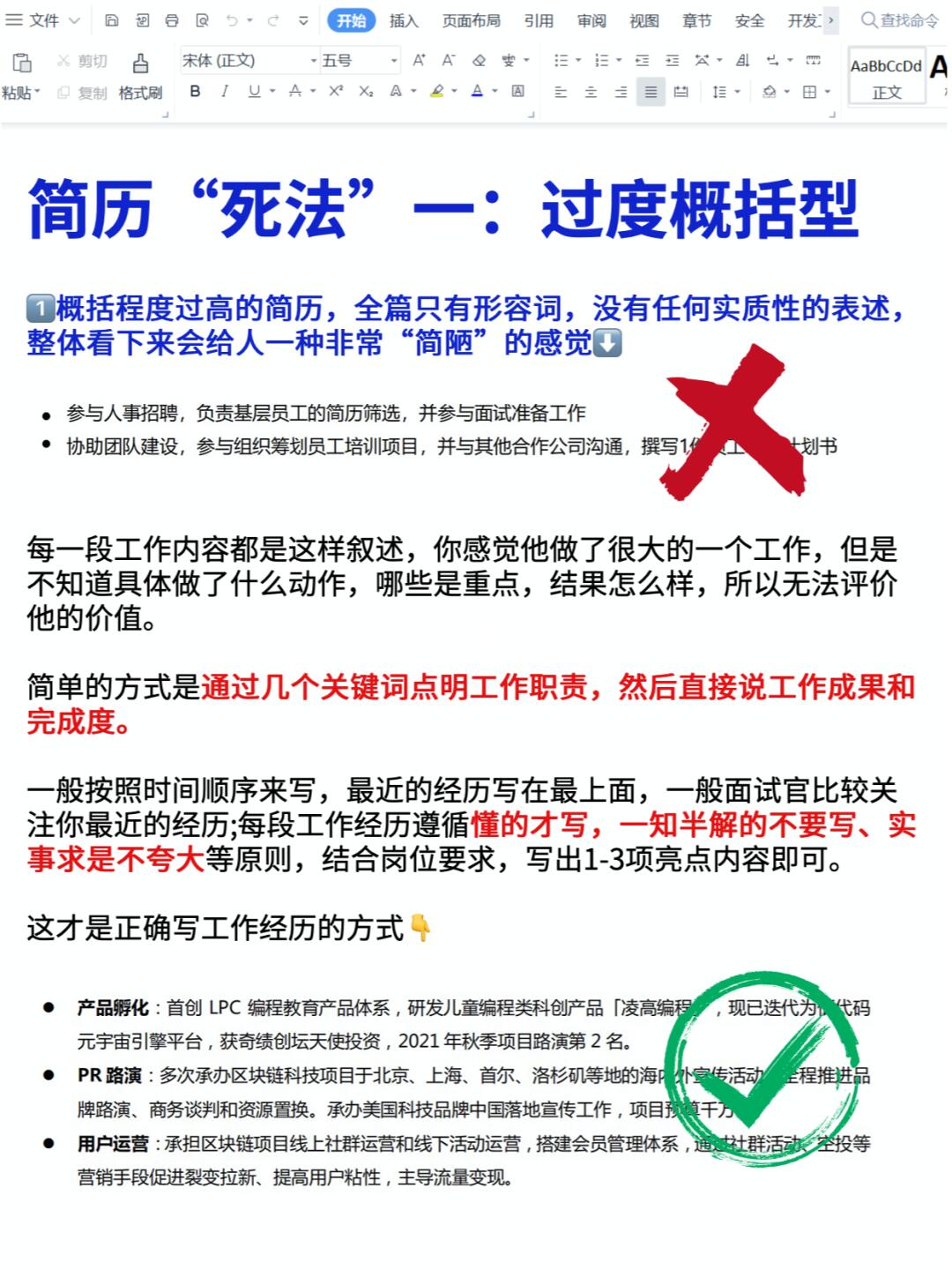 ⭕️简历必挂写法一:过度概况型简历(图2⃣️)