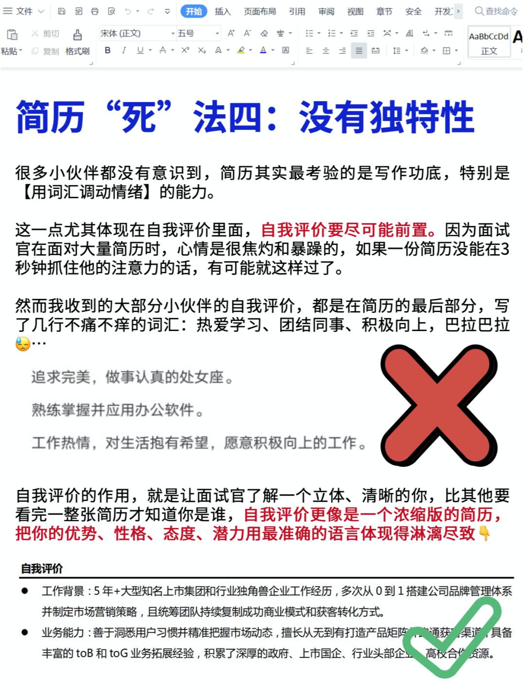 ⭕️简历必挂写法四:没有独特性(图6⃣️)