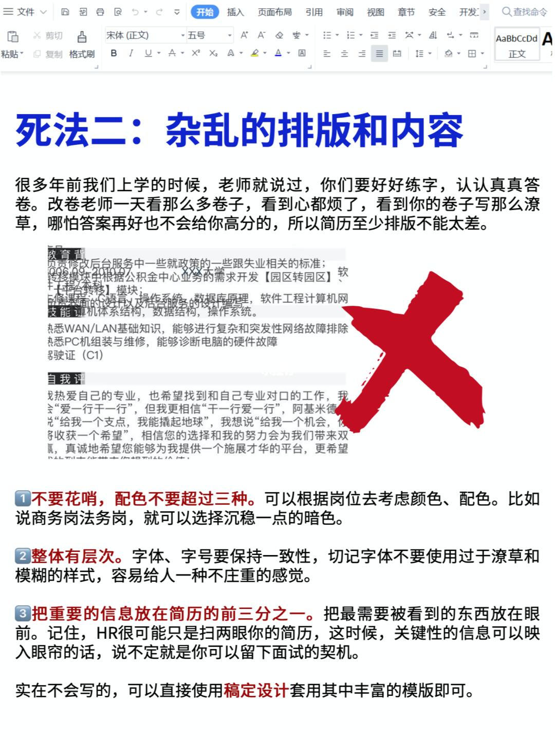 ⭕️简历必挂写法二:内容排版杂乱的简历(图4⃣️)