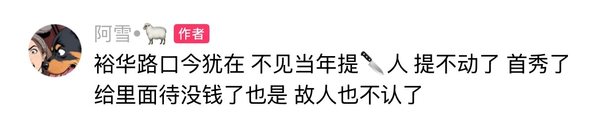 仙家阿雪:裕华路口今犹在,不见当年提🔪人,提不动了,首秀了,给里面待没钱了也是,故人也不认了!