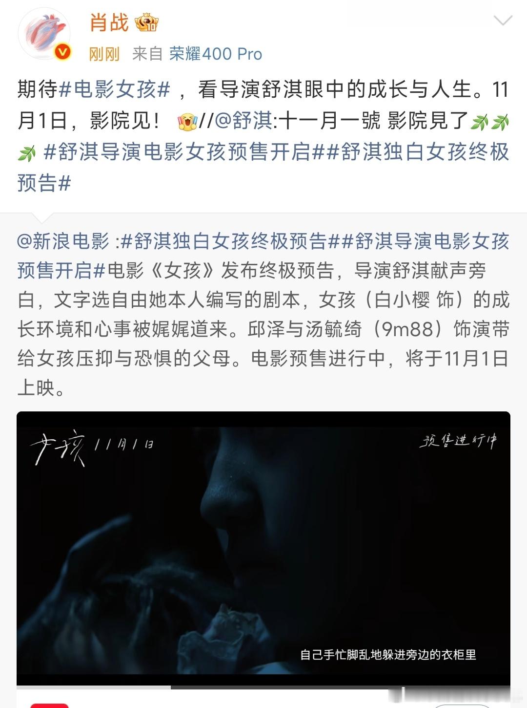肖战期待舒淇电影女孩肖战宣传舒淇新电影宣传委员