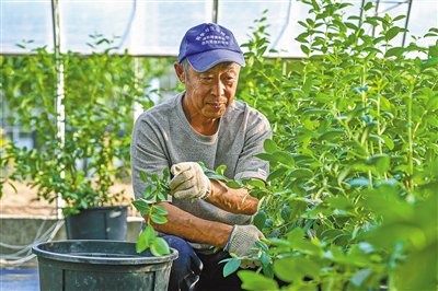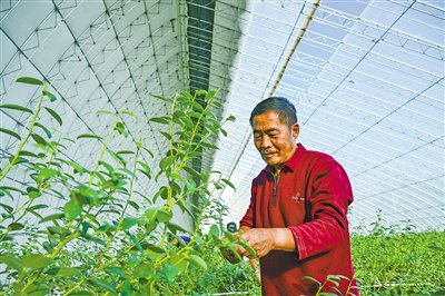 金秋十月,走进鄂尔多斯市达拉特旗恩格贝生态示范区蓝莓种植基地,29栋现代化智能温室大棚内绿意盎然,蓝莓长势正旺。这个位于库布其沙漠腹地恩格贝生态示范区占地309.4亩的基地里,隐藏着春节期间鲜果市场的“财富密码”。大棚内上千盆蓝莓苗舒展着翠绿枝叶,在智能调控的适宜环境中茁壮成长,静待挂果时刻。恩格贝沙漠蓝莓栽培科技示范项目由内蒙古嘉仕农业科技发展有限公司投资建设,项目总投资约5500万元,蓝莓年产量可达58万斤。“今年计划种植蓝莓6万株,每株蓝莓在第一年的产量预计为3.5公斤左右,第二年的产量预计为5公斤到8公斤。我们将为市场提供优质的蓝莓产品,并雇佣当地农牧民进行采摘,后续引导农牧民进行示范种植,带来收益。目前,这批蓝莓长势正旺,预计今年春节前后挂果上市,投产后年收益约1000万元……”该公司负责人千军介绍。据了解,为了确保蓝莓在沙漠地区成功种植,大棚内生产环境可实现全程可控,运用自动化数字系统、环控系统、水肥一体化控制系统等先进技术实现蓝莓在沙漠地区的全天候、全季节、全程绿色无污染生产。生产操作自动化率达60%,水肥利用率提高60%至90%。并通过种植、分拣、存储、包装、运输、销售的全链条管理,真正实现设施农业数字化、标准化、产业化、商业化。
