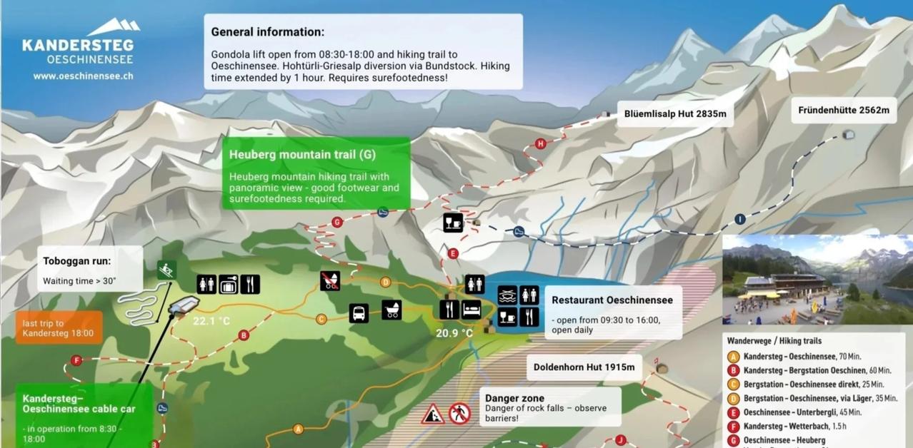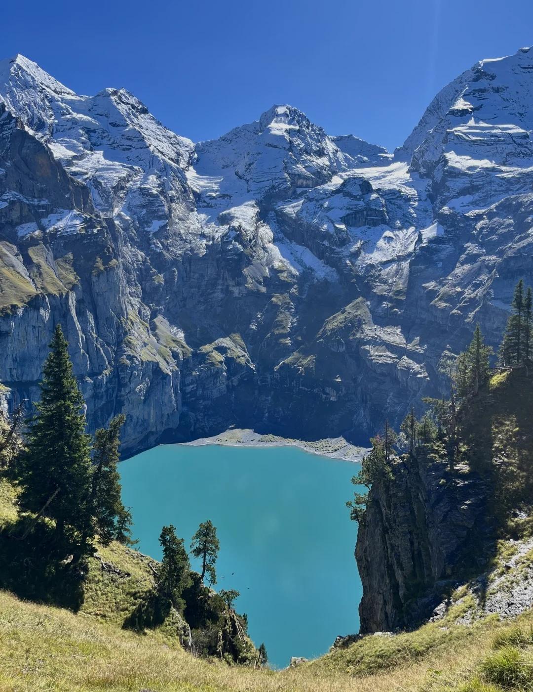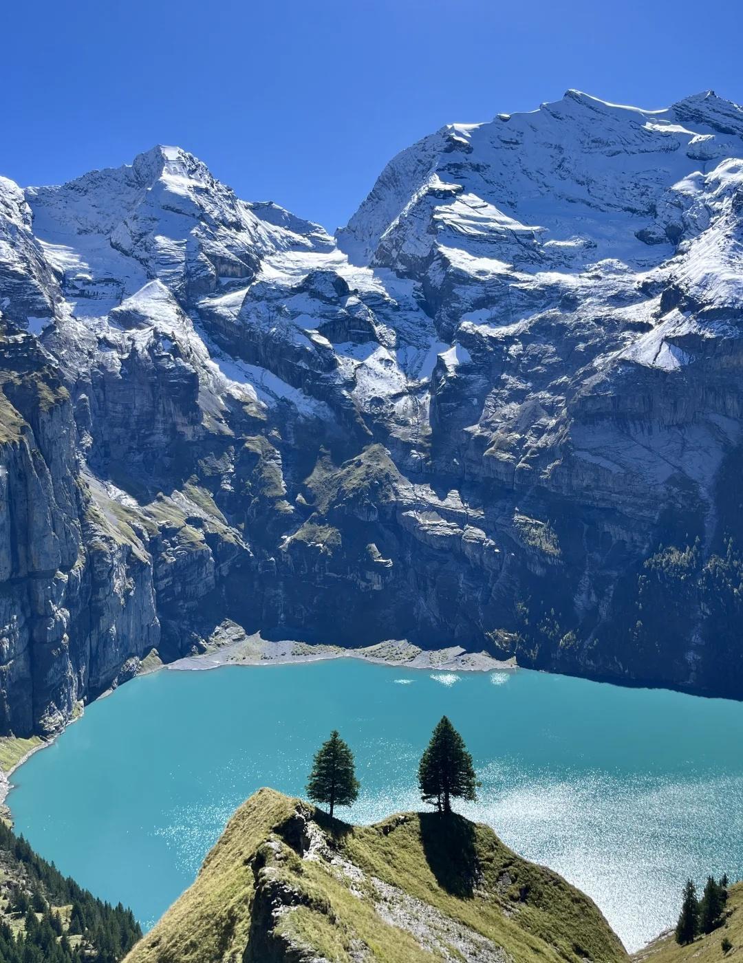 🇨🇭厄希嫩湖|我的梦中情湖 大晴天的厄希嫩湖风景无敌,雪山环抱着蓝宝石般的湖泊,绝对是我的梦中情湖。 🗺️【一句话攻略】 坐火车到kandersteg,换242公交或徒步到缆车站坐缆车上山,想看经典情人树机位和厄希嫩湖全景往山上走D-G-E路线,边走边拍照约5小时,不想爬山直接往湖边走可以划船躺平,单程20-30分钟 💡【TIPS】 1️⃣无论从哪里出发,在SBB把目的地设为山上的缆车站Oeschinen (Bergstattion),搜出来的路线包含火车、公交缆车的接驳路线导航,超级方便 2️⃣注意缆车末班车时间,错过了只能腿下山 3️⃣持瑞士通票买往返缆车票打五折只要18.5瑞士法郎 4️⃣官网徒步路线图看p13 @瑞士国家旅游局 @摄影薯 旅行的意义 厄希嫩湖 瑞士旅游 瑞士徒步