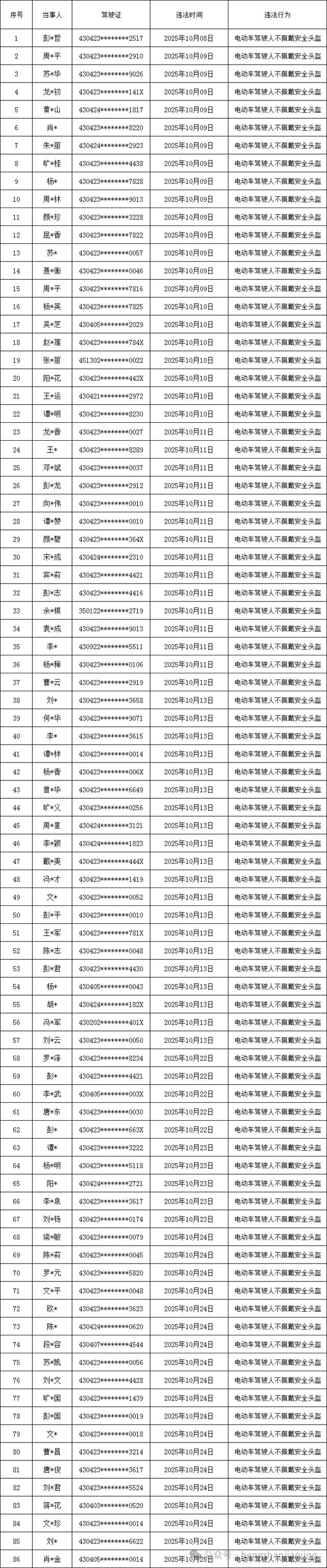 违法人员名单