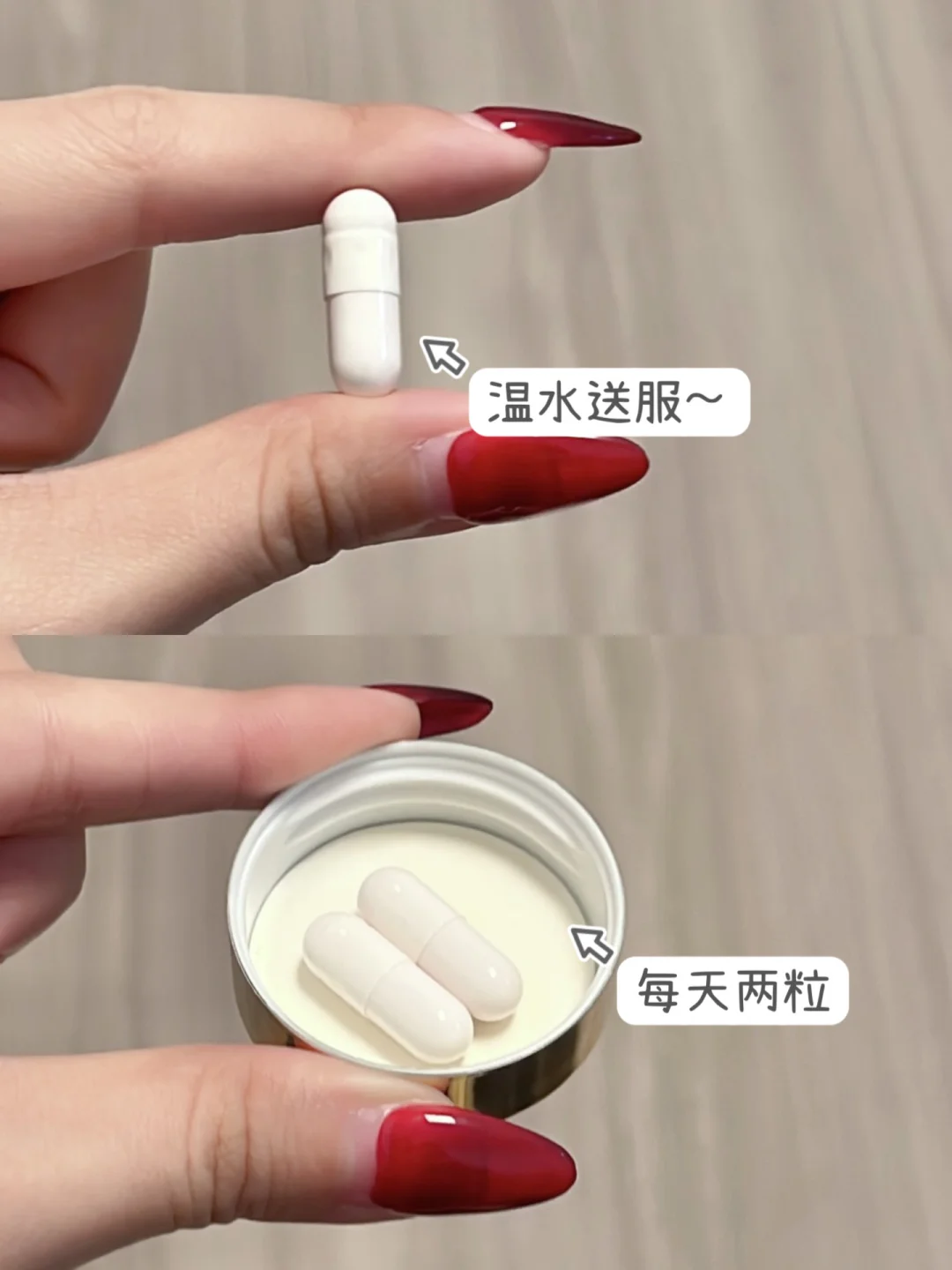 每天随餐吃2颗,温水送服即可