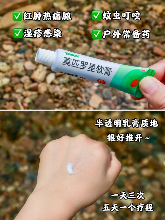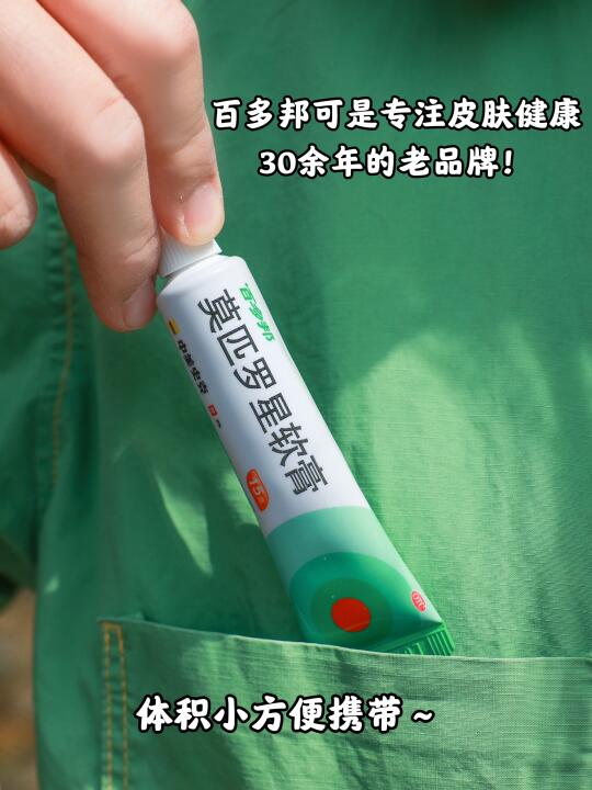 天气热一些脆皮宝宝就很容易引起湿疹,湿疹挠破后在野外碰到水就更容易导致细菌感染,这种情况一定要及时用药干预,不能拖着,不然湿疹感染的拉锯战就会更长,这个时候可以备上百多邦莫匹罗星软膏,小小一支携带很方便,不占地方,软膏质地给孩子涂抹也不用担心会弄脏衣服,孩子在野外被蚊虫叮咬挠破导致湿疹感染了也可以用,