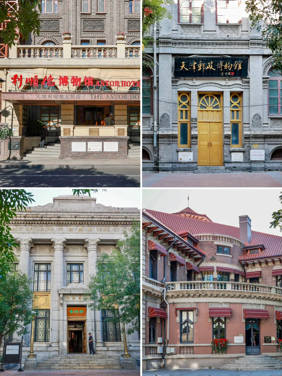 瓷房子➡️张爱玲旧居(室外可免费拍照)➡️张学良故居➡️利顺德博物馆➡️泰安道(citywalk)➡️解放北路(citywalk)➡️中国银行博物馆➡️中国邮政博物馆➡️解放桥(中国唯一的双叶立转式开启桥)➡️世纪钟(天津的标志建筑之一)➡️津湾广场(夜景美)➡️意风街(意大利风格建筑街区)➡️大悲院(天津香火最旺的寺庙之一)➡️天津之眼(建在桥上的浪漫摩天轮)➡️鼓楼➡️古文化街➡️望海楼教堂➡️北安桥(小塞纳河畔)