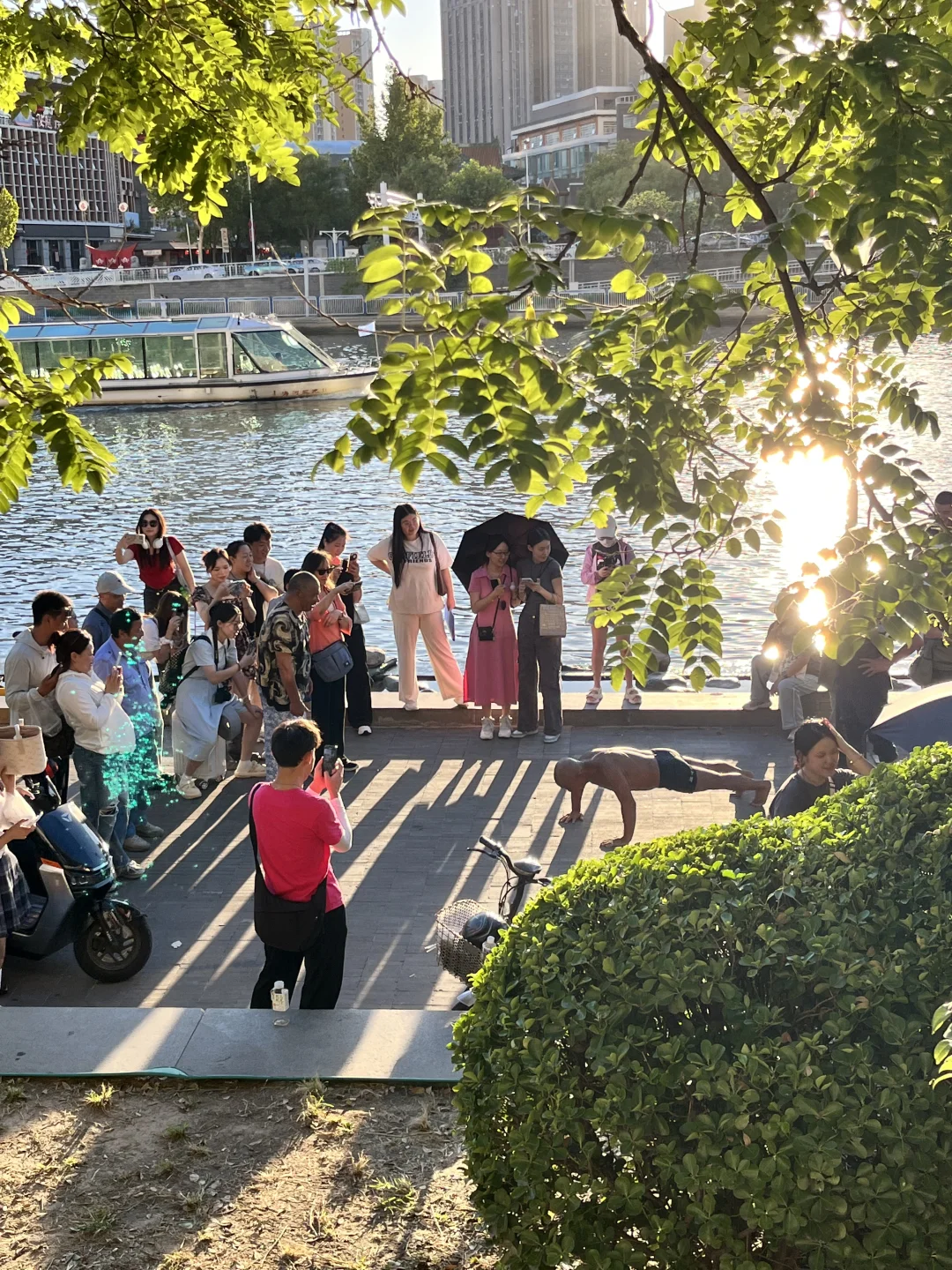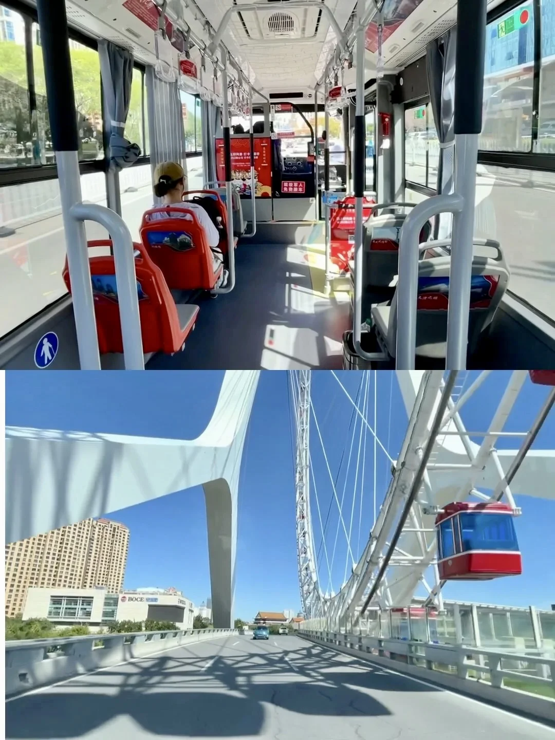 这是一趟延海河两岸行驶的公交车