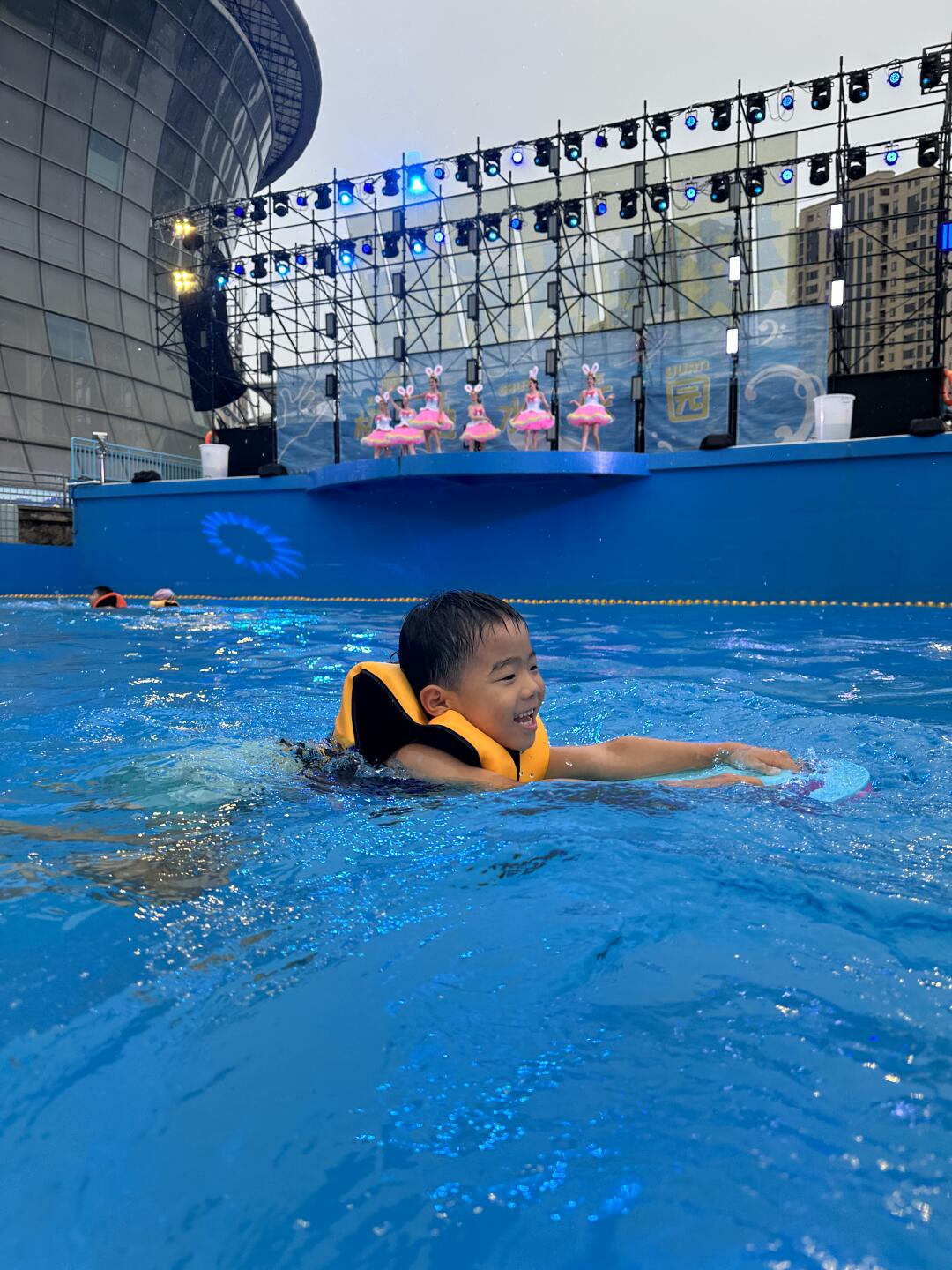还有造浪池,造浪开启时刺激又好玩,没有浪花时就是小朋友们的大游泳池,晚上还有电音派对,一边游泳一边看表演还是第一次