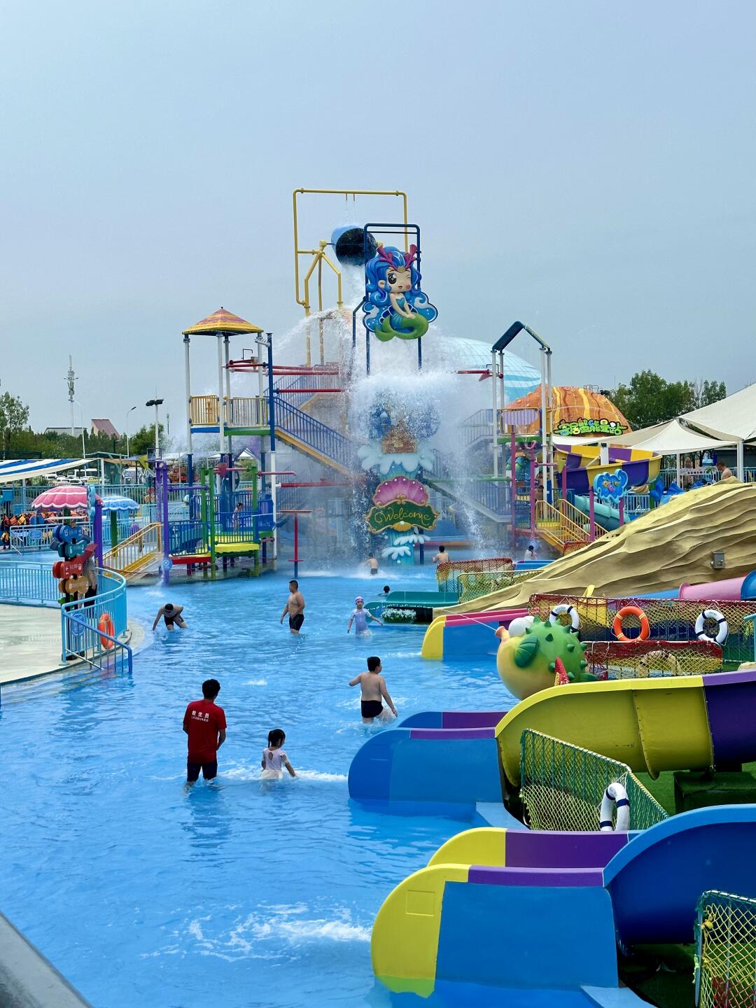 这个水乐园太适合小朋友了,超多各种坡度的大滑梯,麦芽换着滑了无数遍。