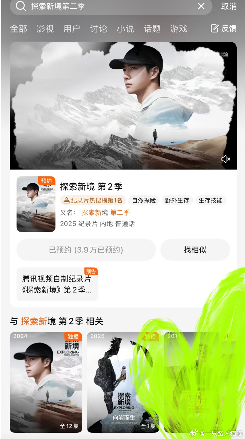 探索新境2要来了现在非常怀疑王一博是不是要走贝尔的路线,一直在外面冒险