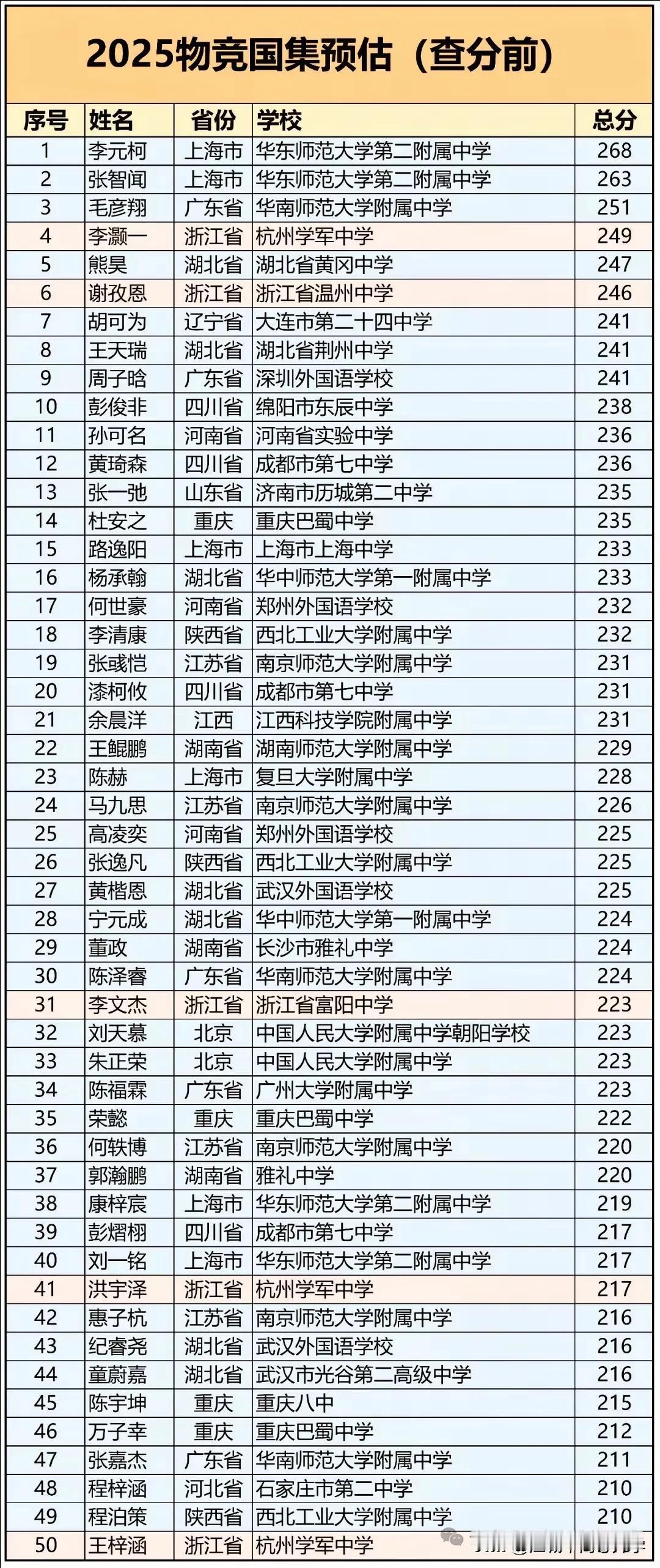 第42届全国中学生物理竞赛湖北队全国最强 从网传的国集名单来看, 湖北队共有7人