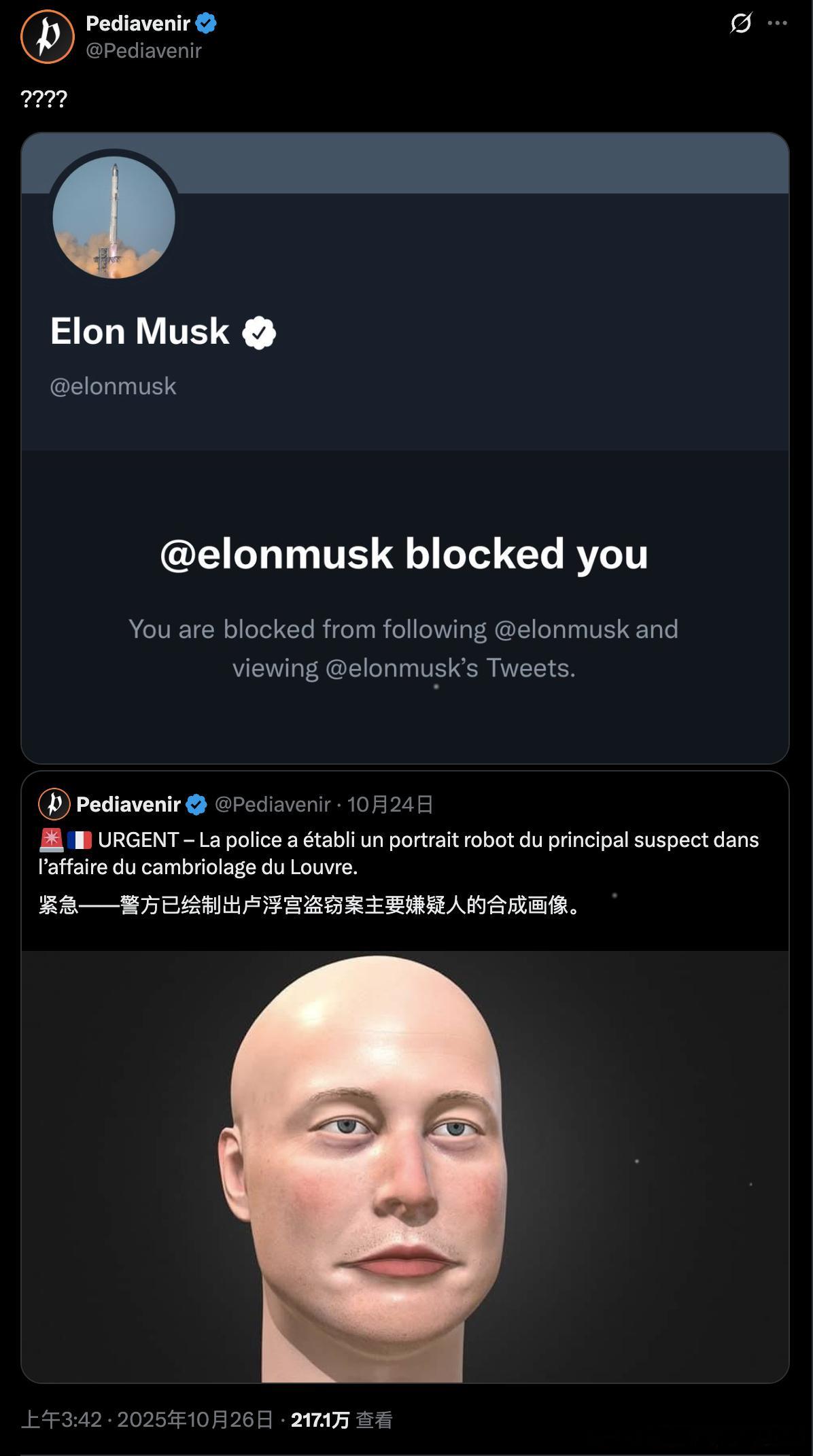 Pediavenir是一个法国媒体账号 前几天发布了一张疑似卢浮宫盗窃犯的人脸(