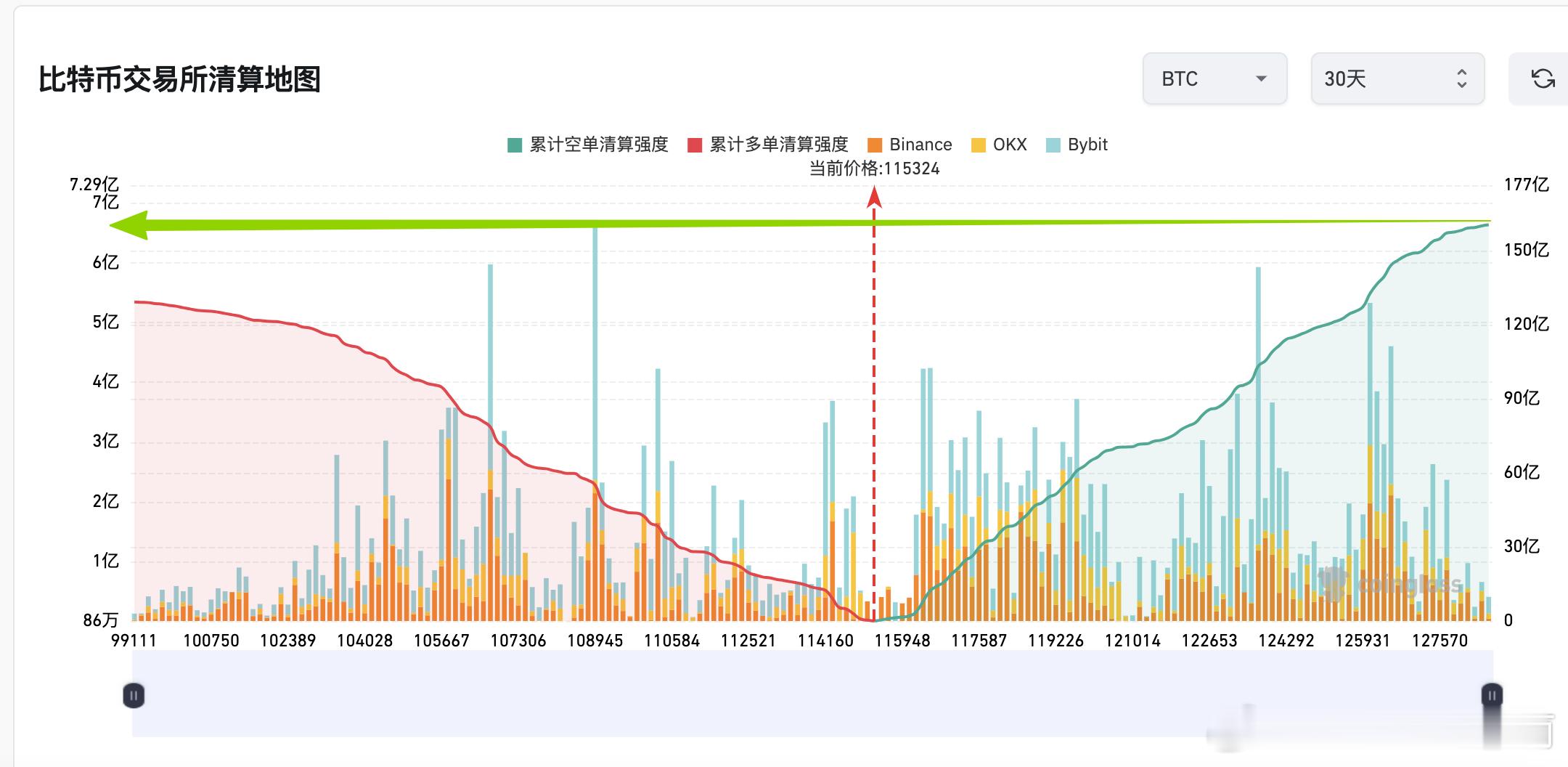 另外一个值得关注的是清算地图,按理说,市场经过了这么多天的反弹修复,我以为多头已经开始兴奋起来了,但是事实是,现在空头还比多头高出那么一截