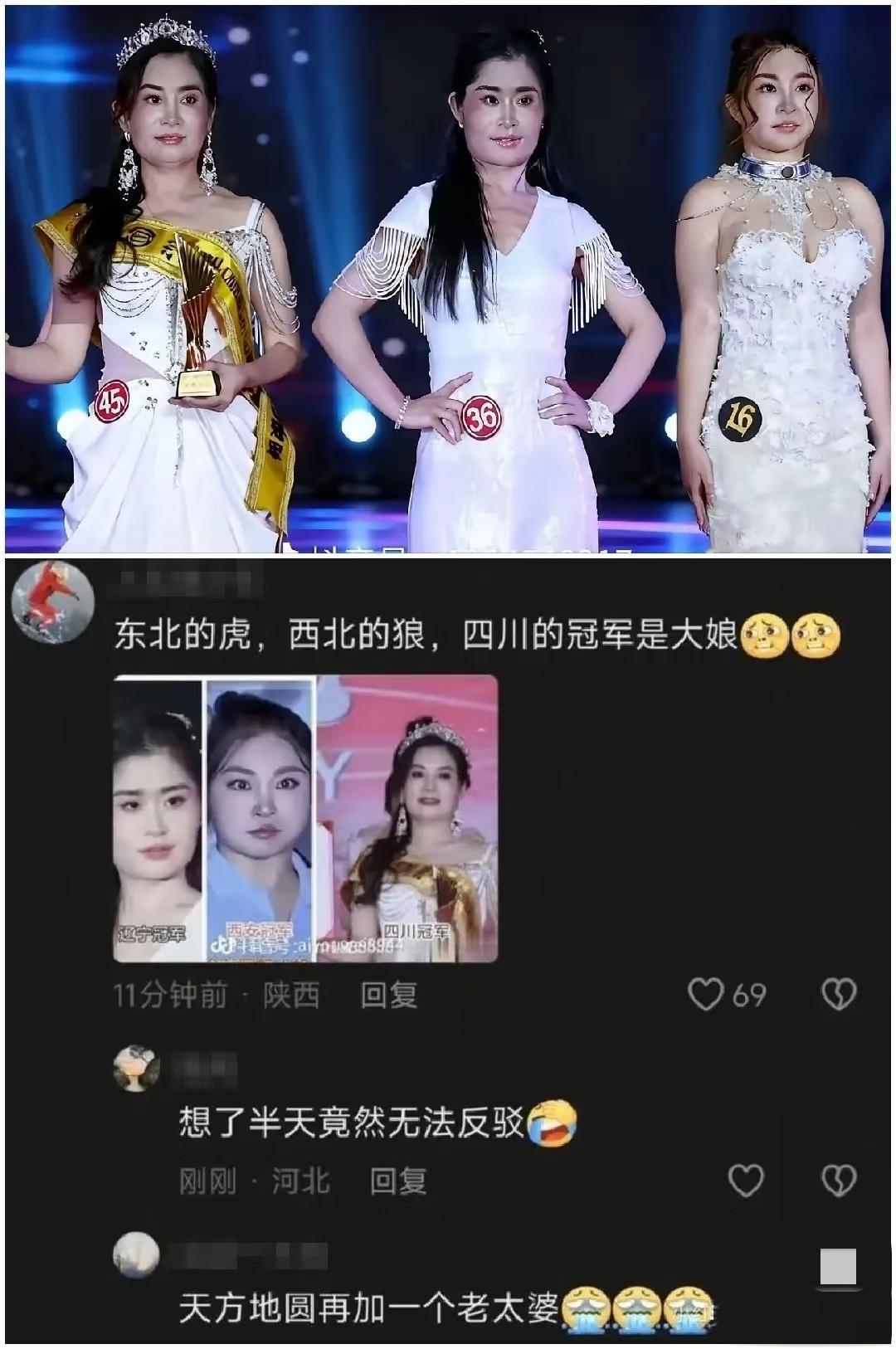 全国各省市选美大赛!真的是没有 对比就没有伤害!辽宁方脸冠军被 嘲像路人,陕西圆脸佳丽获封“李唐 园园”,四川冠军遭调侃像大娘。 但网友骂错了!辽宁冠军是公益达人,评委重真实担当; 陕西佳丽靠健康体态拿奖,是对“白瘦幼”的反击。这哪是翻车, 是选美终于不唯颜值论了。 你觉得这种“接地气”的选美,是审美进步还是标准跑偏了?