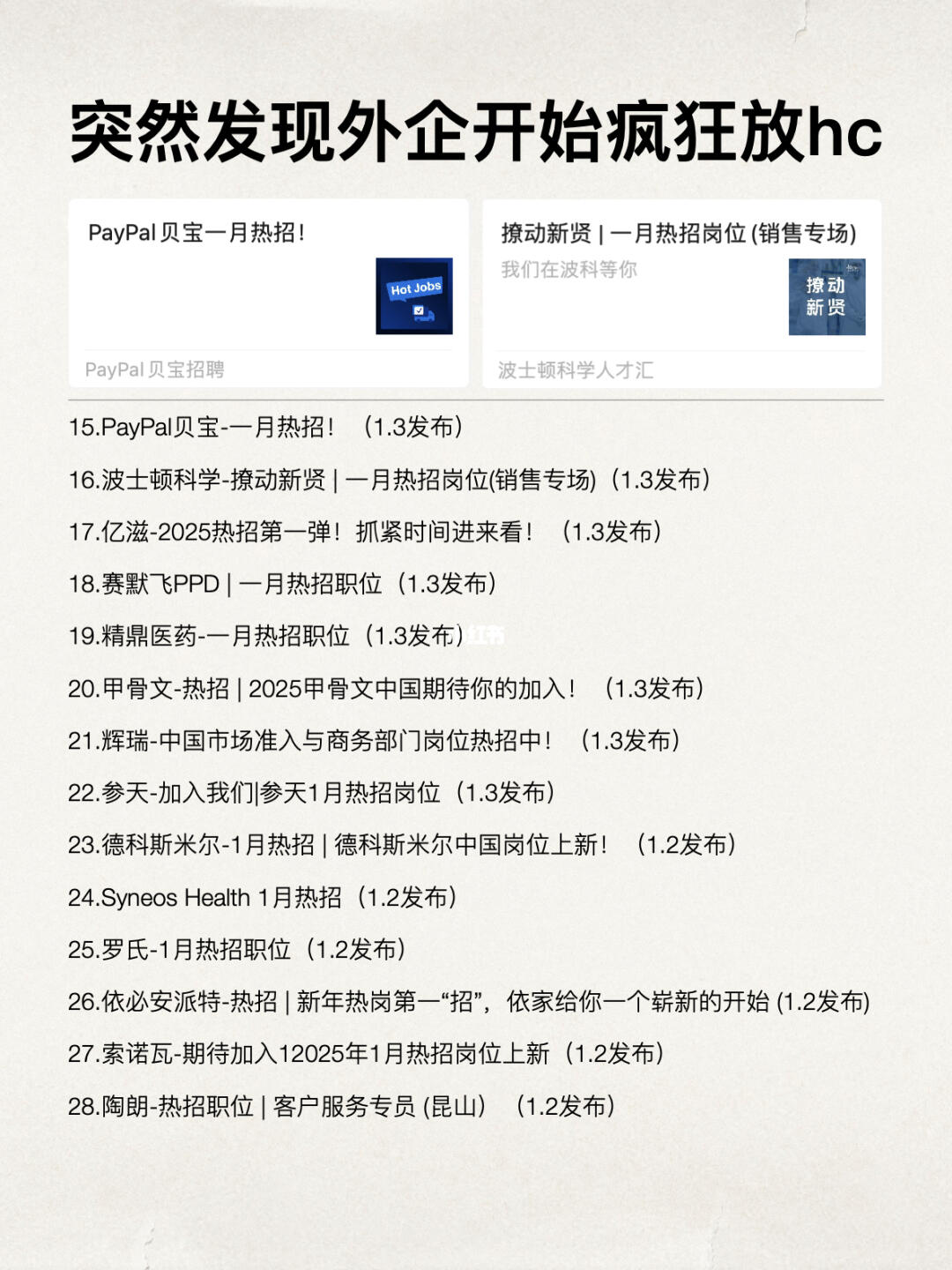 ✅准备年后找工作的最近可以开始观望外企机会了,1月份这波招人确实是有点给力!真的有很多好机会,可以一边看看岗位一边改改简历了